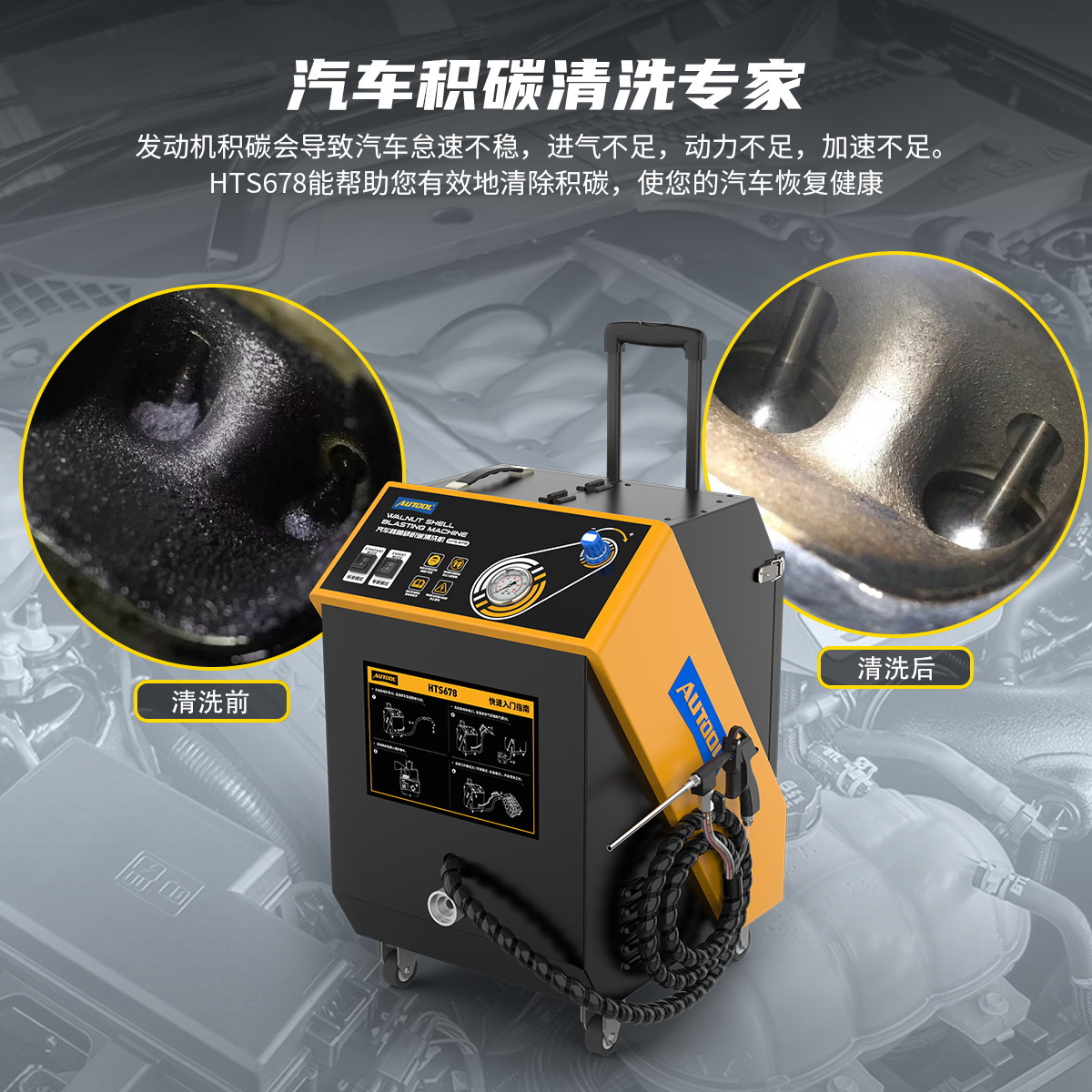 Máquina de limpieza de depósitos de carbón del sistema de admisión del motor automotriz Autool HTS678 para eliminar los depósitos de carbón del cilindro del acelerador