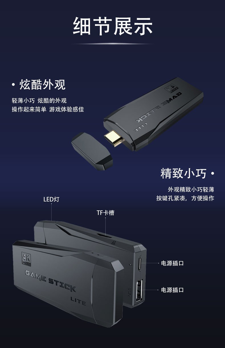 | Lista de embalaje | Consola de juegos * 1 tarjeta TF * 1 mango de juego inalámbrico * 2 receptor de mango * 1 cable de datos * 1 cable de extensión HDMI * 1 manual * 1 |