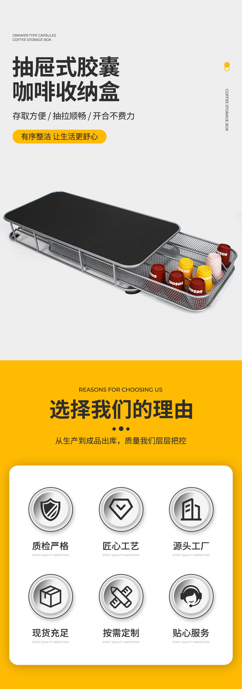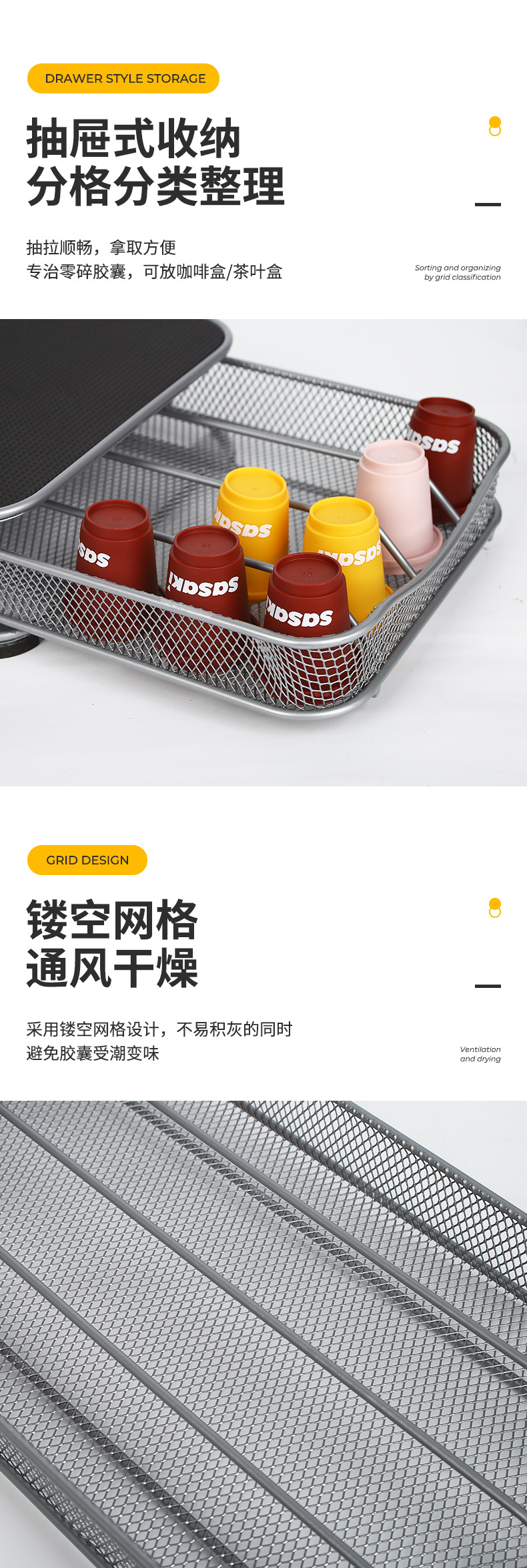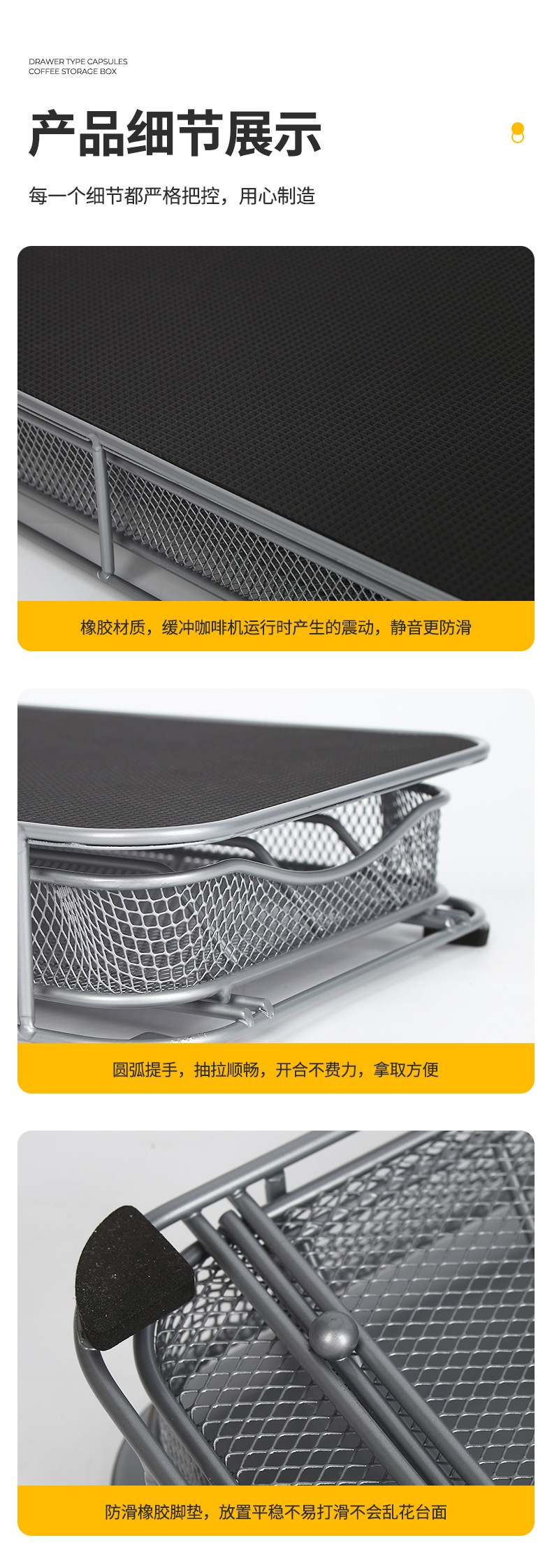 Caja de almacenamiento de cápsulas de café con cajón transfronterizo estante de hierro creativo inferior de máquina de café estante de almacenamiento a prueba de polvo
