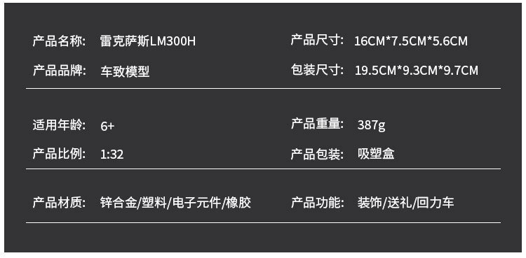 | Proporción del modelo del vehículo | 1:32 |