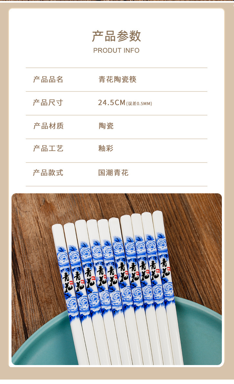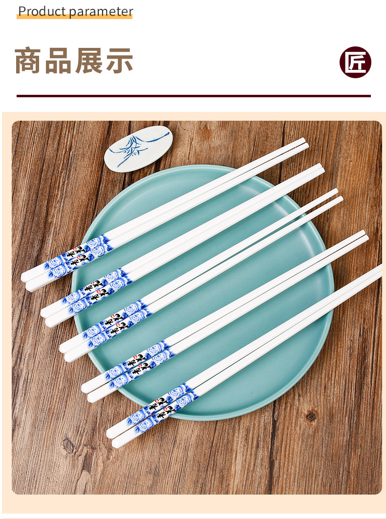 Palillos de cerámica azul y blanco, porcelana blanca, vajilla para el hogar, resistente a altas temperaturas, a prueba de moho y sin deformación, palillos de regalo al por mayor