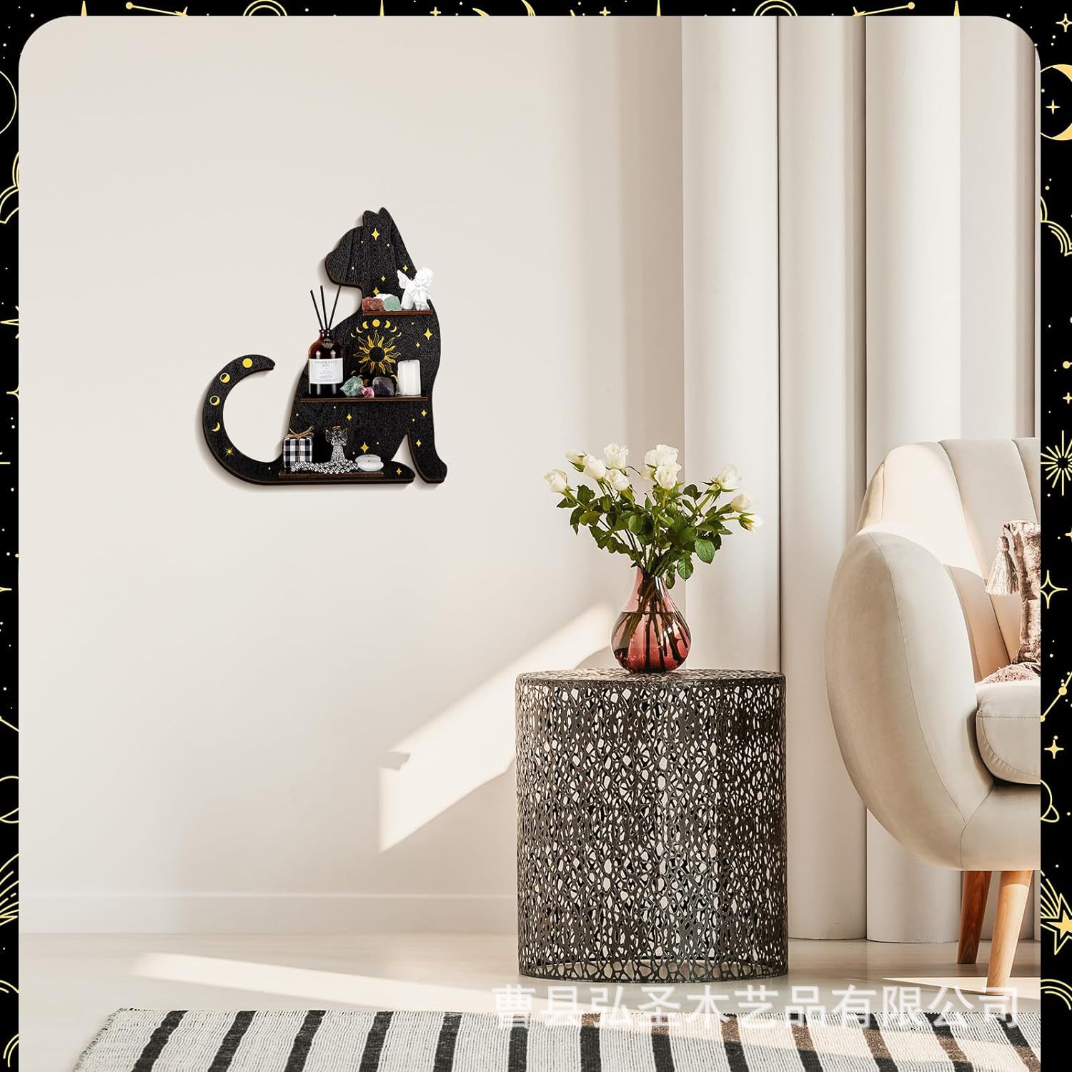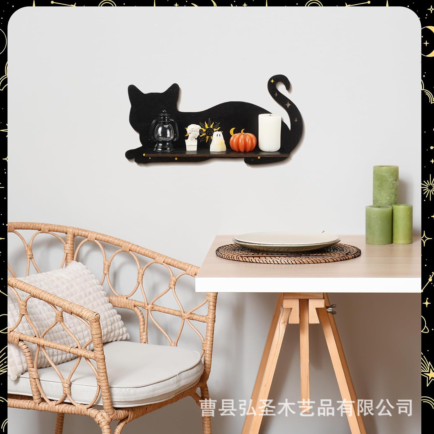 Nuevo producto Gótico Animal Cat Pared de madera Estante de almacenamiento de cristal Decoración de estante de Halloween