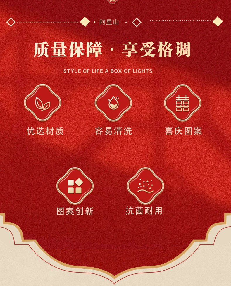 | Color | Individual y doble [embalaje simple-10 pares una bolsa OPP],Dos pares de Cielo y Tierra cubren Xi en caja [personaje Golden Xi],Cinco pares de felicidad en caja [eventos familiares felices],Diez pares de felicidad en caja [cien años de buen partido] |