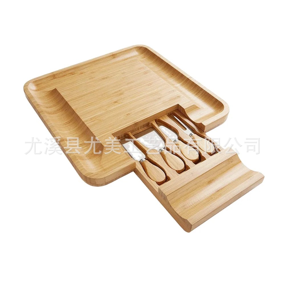 Tablero de queso de bambú transfronterizo traje de queso tablero de corte de cajón cuadrado tablero de pizza con cuatro cuchillos
