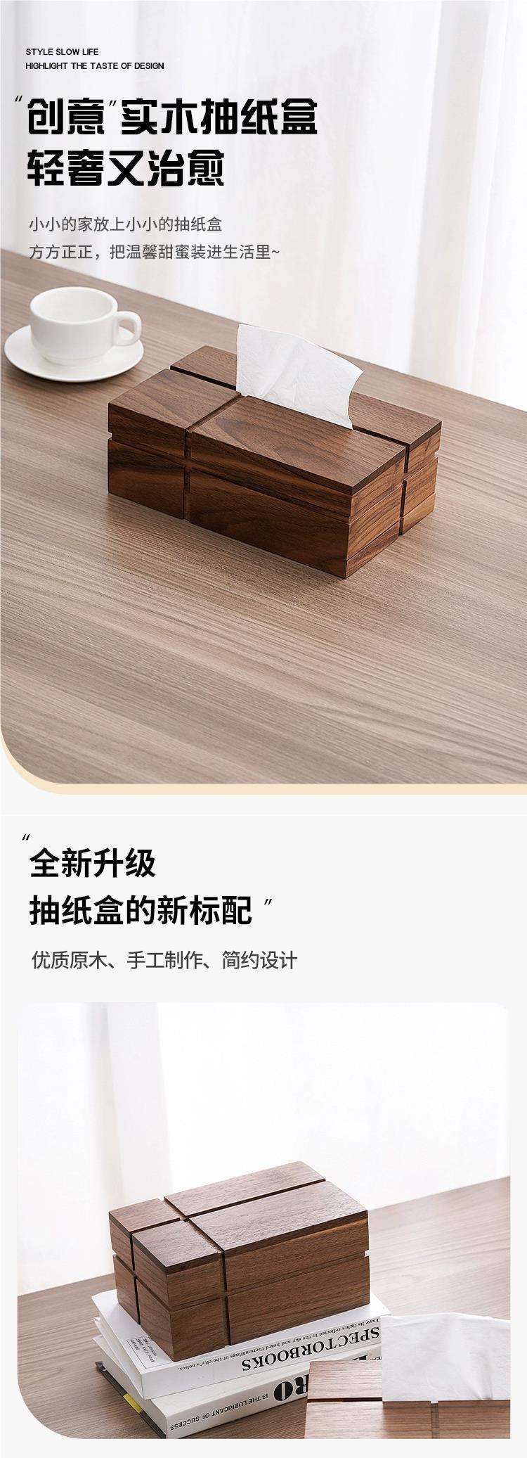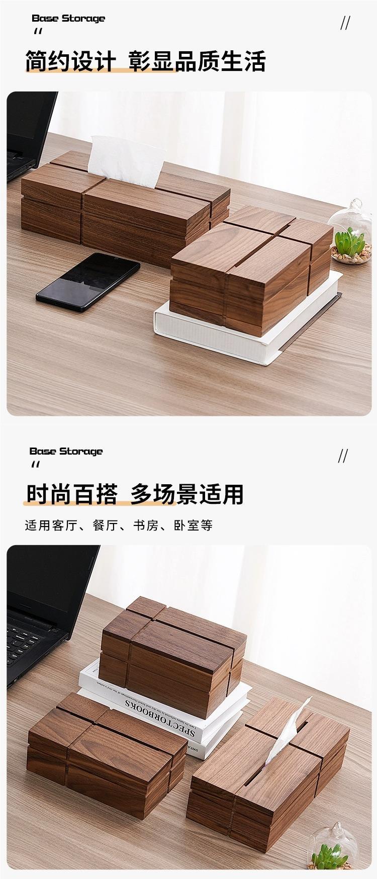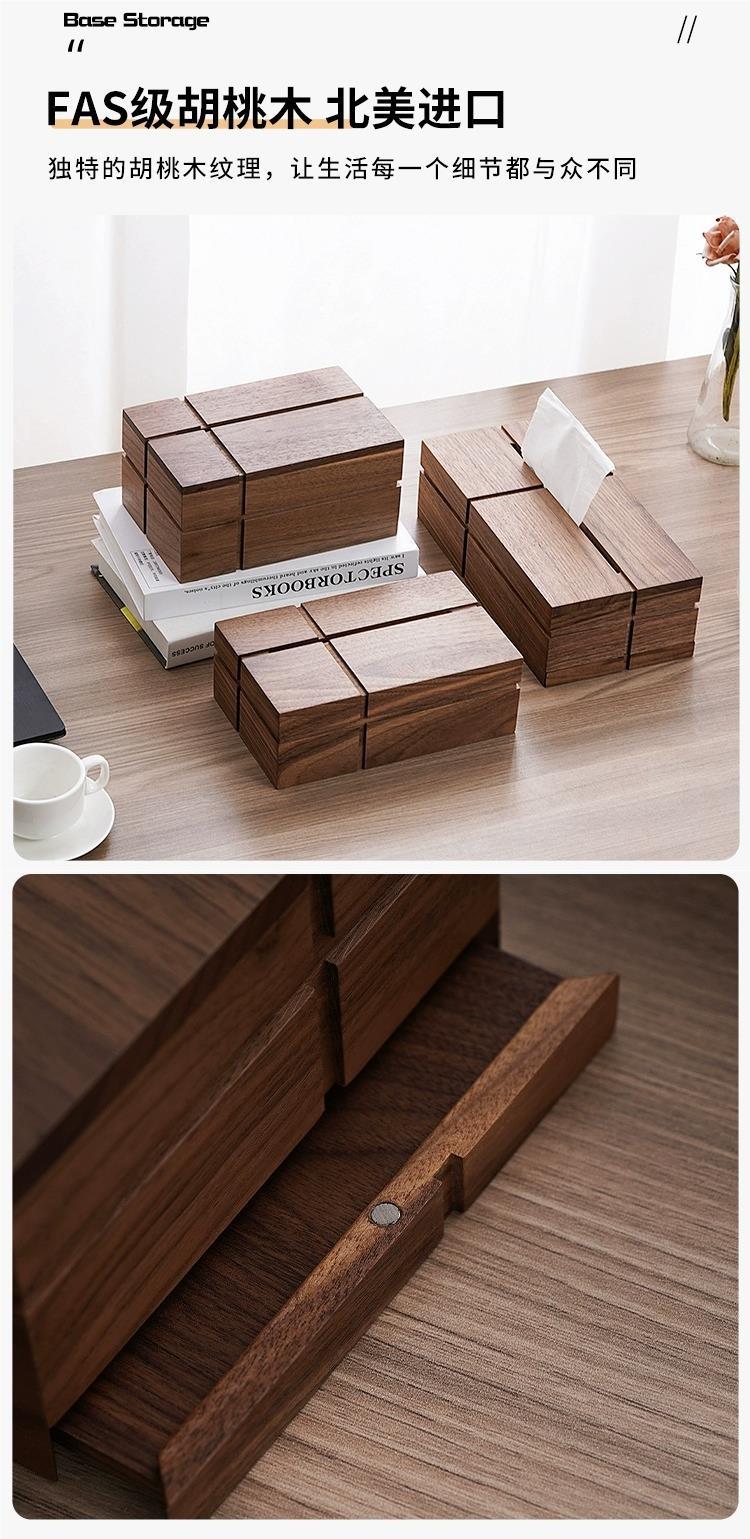 Caja de pañuelos de nogal retro, caja de dibujo cruzado para sala de estar, mesa de centro para el hogar, caja de papel de servilleta, caja de dibujo de papel de madera maciza creativa