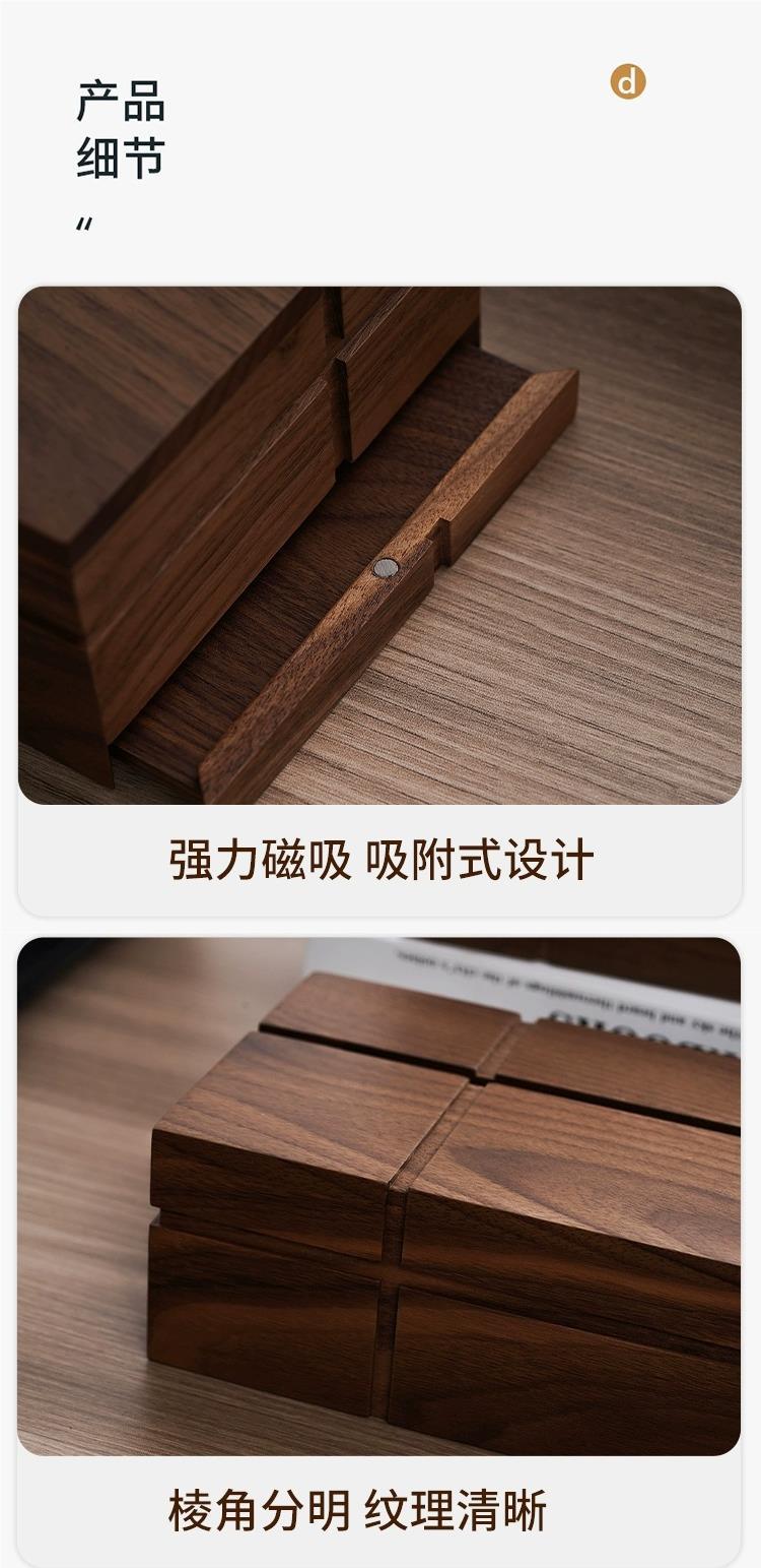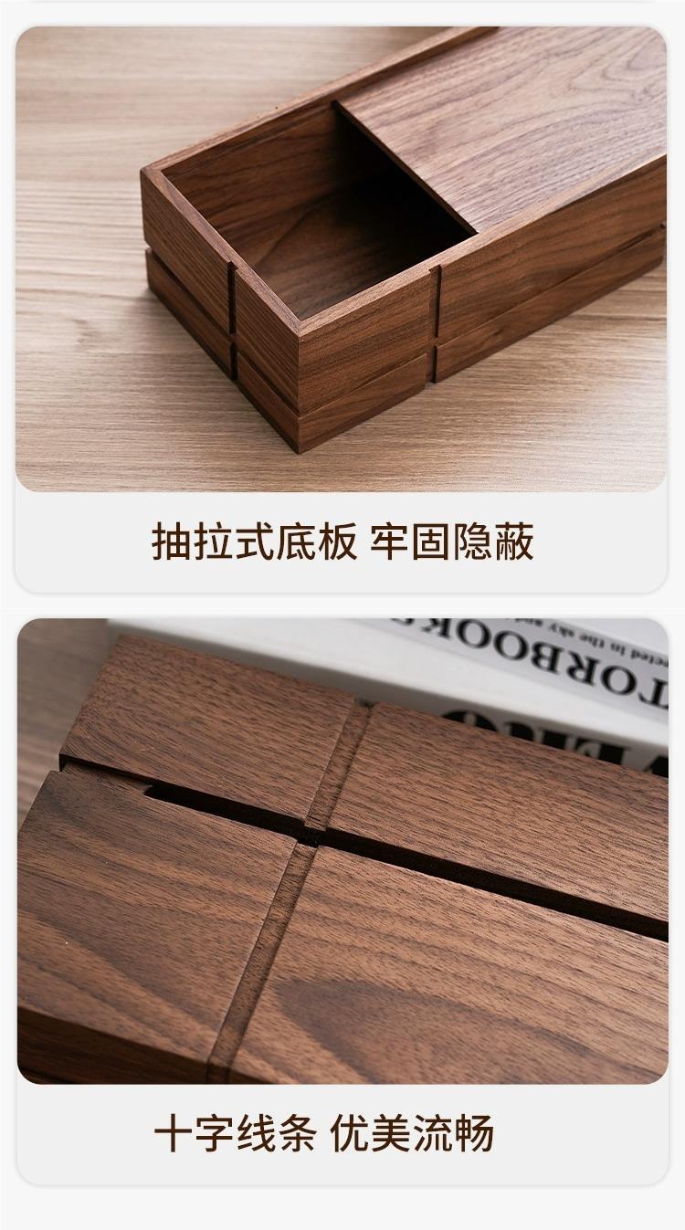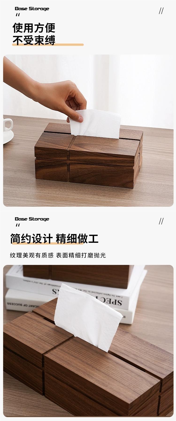 Caja de pañuelos de nogal retro, caja de dibujo cruzado para sala de estar, mesa de centro para el hogar, caja de papel de servilleta, caja de dibujo de papel de madera maciza creativa