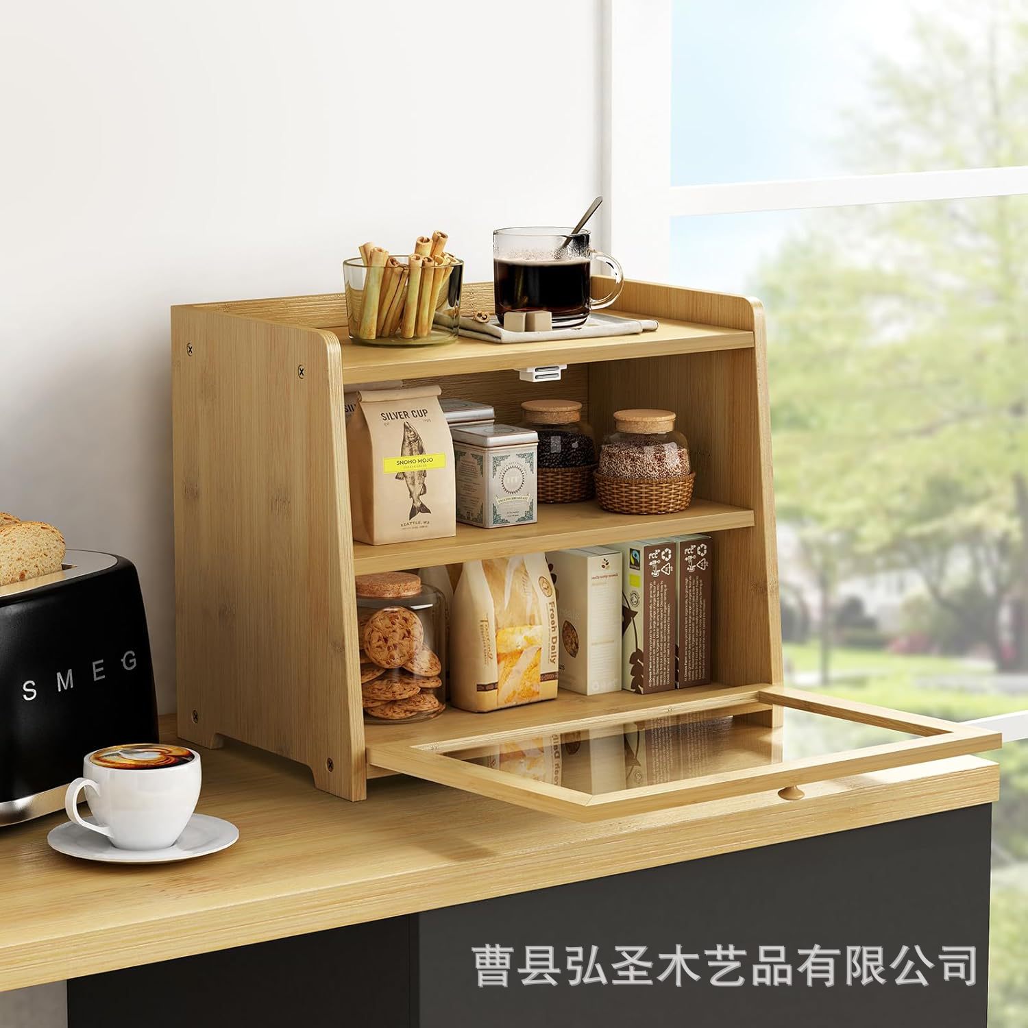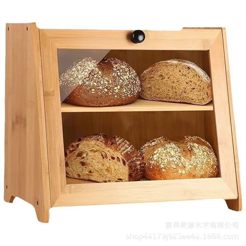 Caja de pan de bambú Caja de almacenamiento de encimera de cocina de madera Caja de pan retro de madera Contenedor Armario Dormitorio Caja de baño