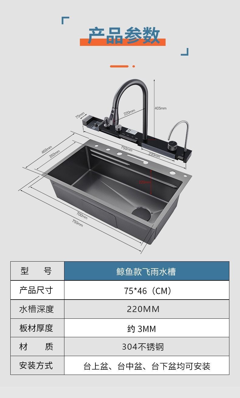 | Colores | Juego completo de ballenas [con grifo de limpieza de jabón],Grifo multifunción integrado de ballena,Fregadero de acero inoxidable Feiyu,Fregadero de acero inoxidable tiburón |