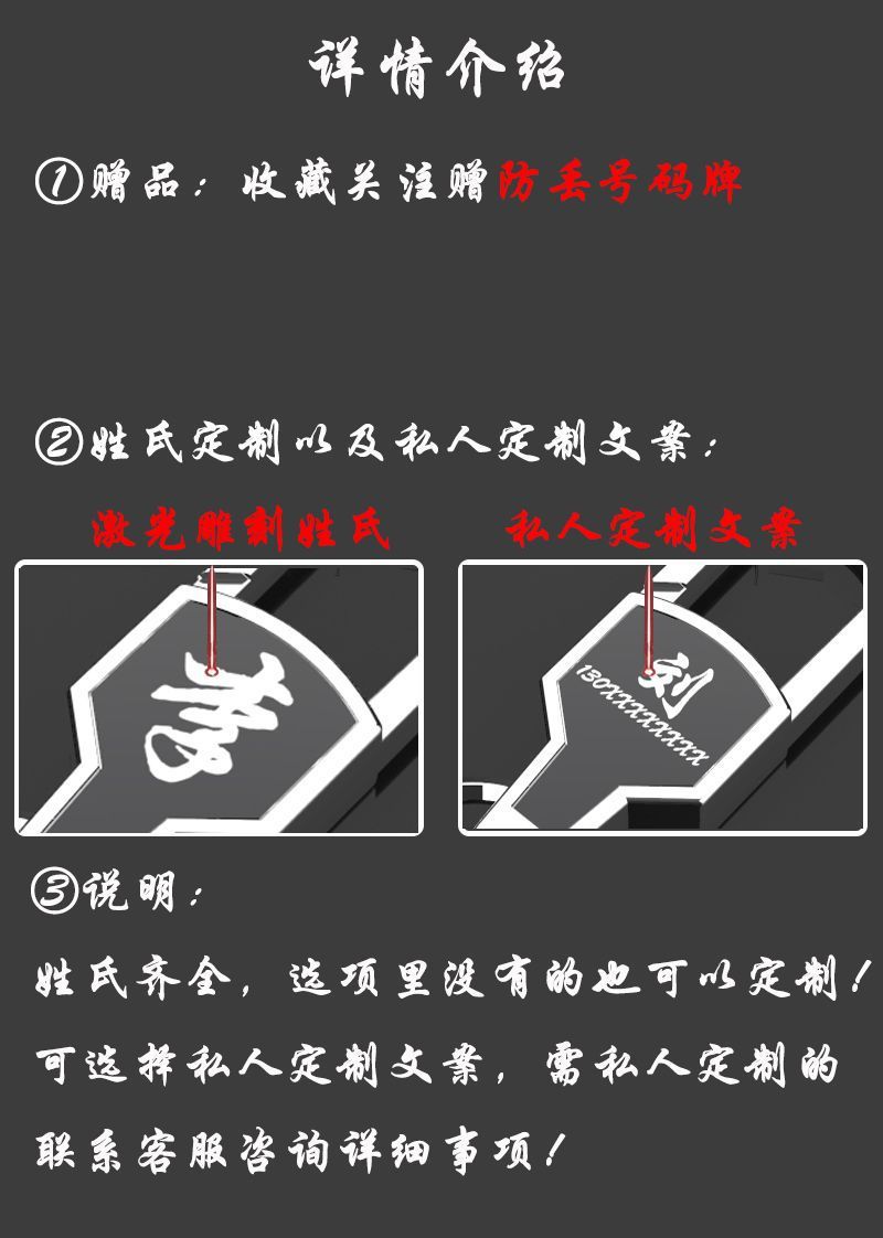 | Colores | Wang [matrícula de regalo],Li [matrícula de regalo],Zhang [matrícula de regalo],Chen [matrícula de regalo],Yang [matrícula de regalo],Amarillo [matrícula de regalo],Zhao [matrícula de regalo],Wu [matrícula de regalo],Zhou [matrícula gratuita],Xu [matrícula de regalo],Sun [matrícula de regalo],Caballo [matrícula de regalo],Zhu [matrícula de regalo],Hu [matrícula de regalo],Comuníquese con el servicio al cliente para otros apellidos [matrícula gratuita],Sin personalización en blanco [sin matrícula gratis] |