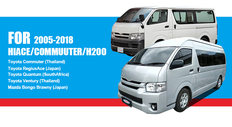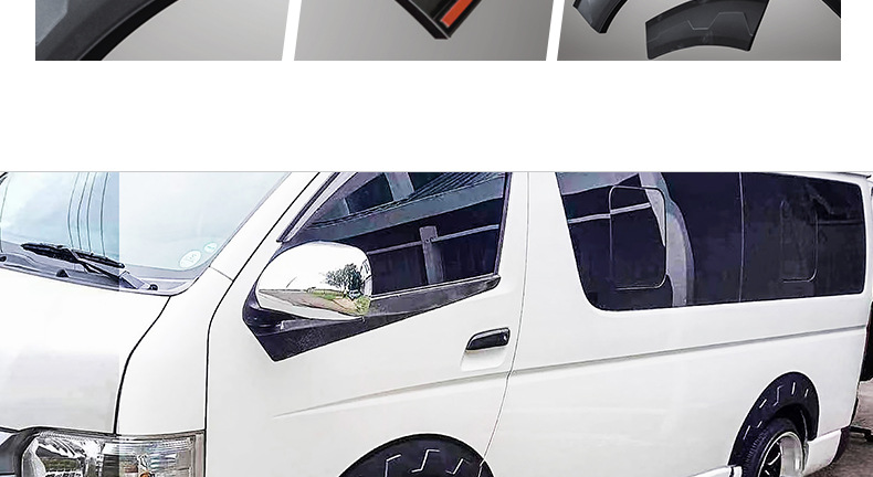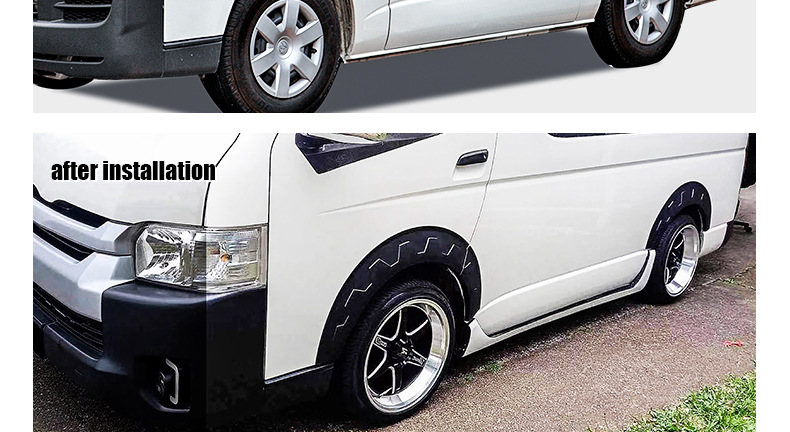 | Especificaciones | 2005-2018-Hiace Sea Lion Ceja de rueda ancha Juego de 6 piezas |