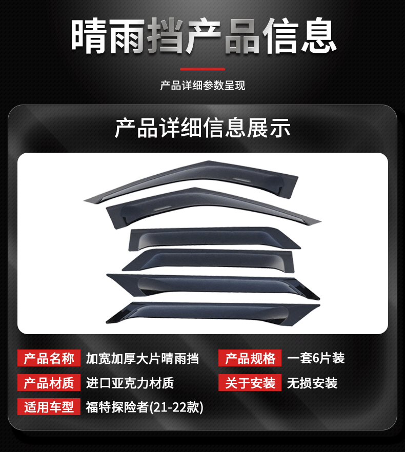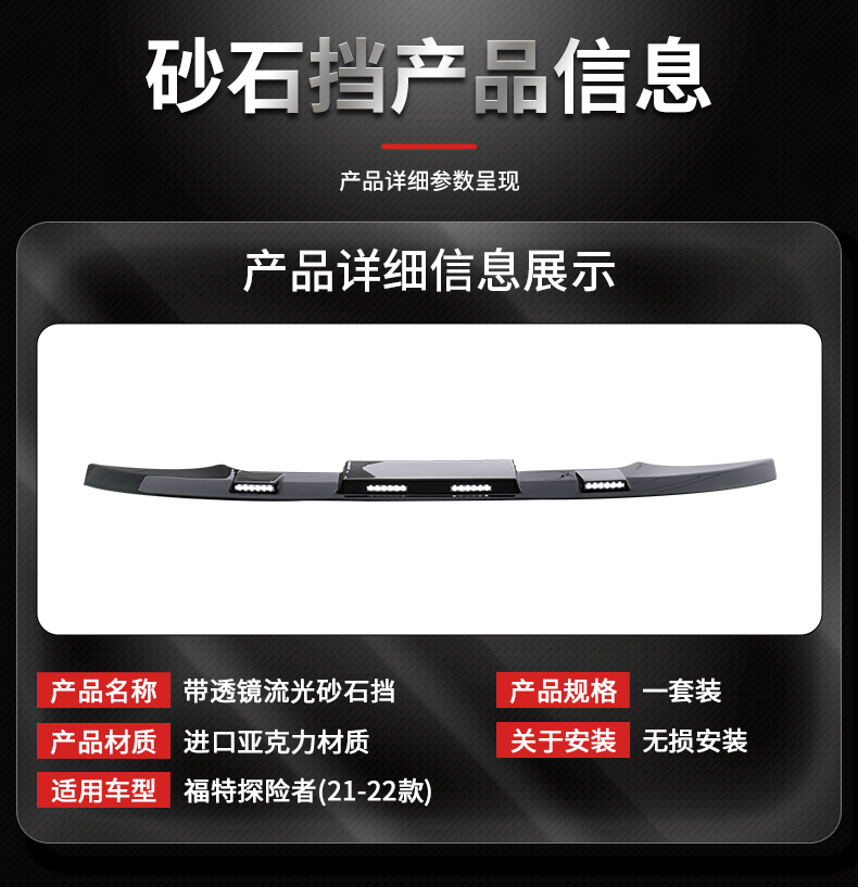 | Especificaciones | Explorer-20-hoy [Escudo de lluvia ensanchado y engrosado] 6 piezas,Explorer-20-hoy [cubierta de la máquina de grano de fibra de carbono de doble capa] 1 paquete,Explorer-20-hoy [bloque de grava streamer con lente] 1 paquete,Explorer-20-hoy [reflector de techo] 1 paquete |