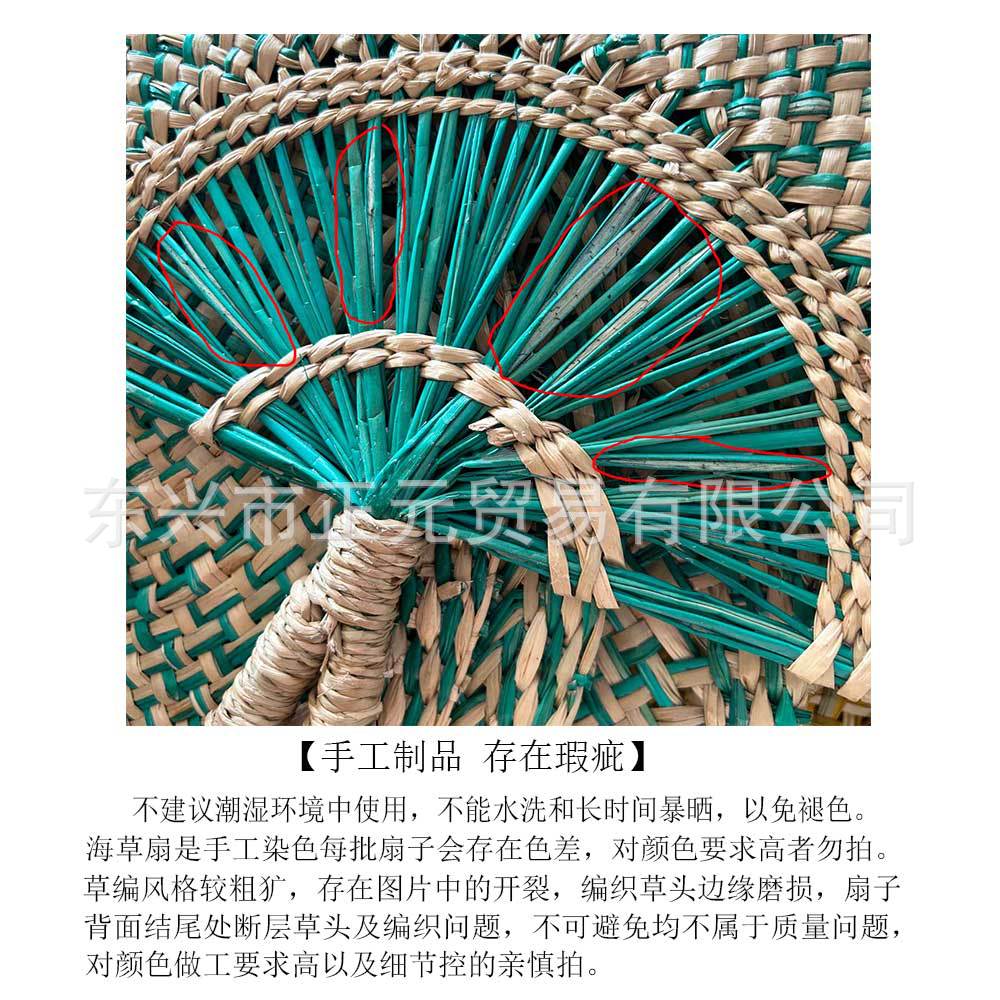 温馨提示:草编风格较粗犷必定不完美对手工要求甚高者慎拍,手工编织品每一把扇子略存在(编织草头边缘磨损扇子背面结尾处断层草头及编织问题)不可避免均不属于质量问题。