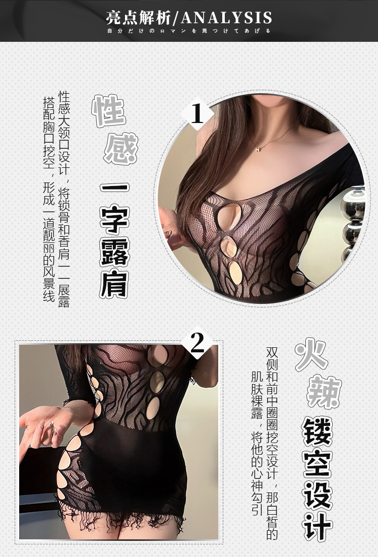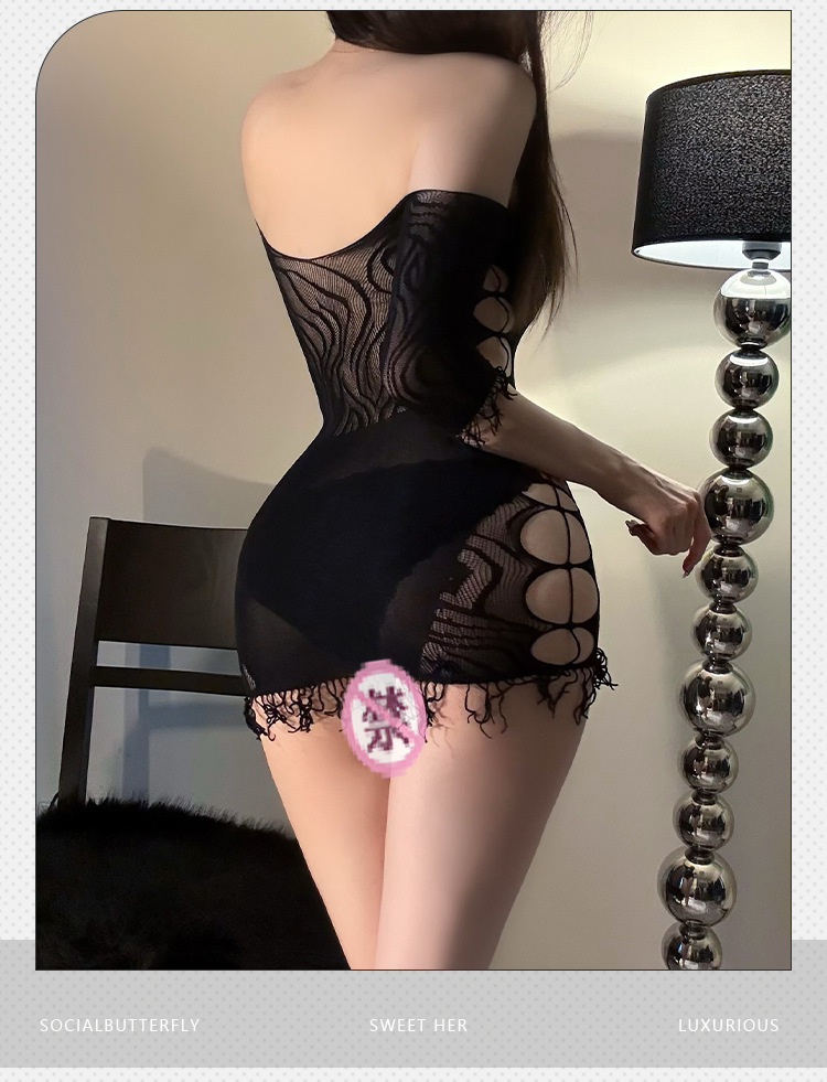 Ropa interior sexy gratis 2024 nuevo estilo sexy jacquard de un solo hombro agujero malla vestido uniforme puro deseo de pecho pequeño en nombre del cabello