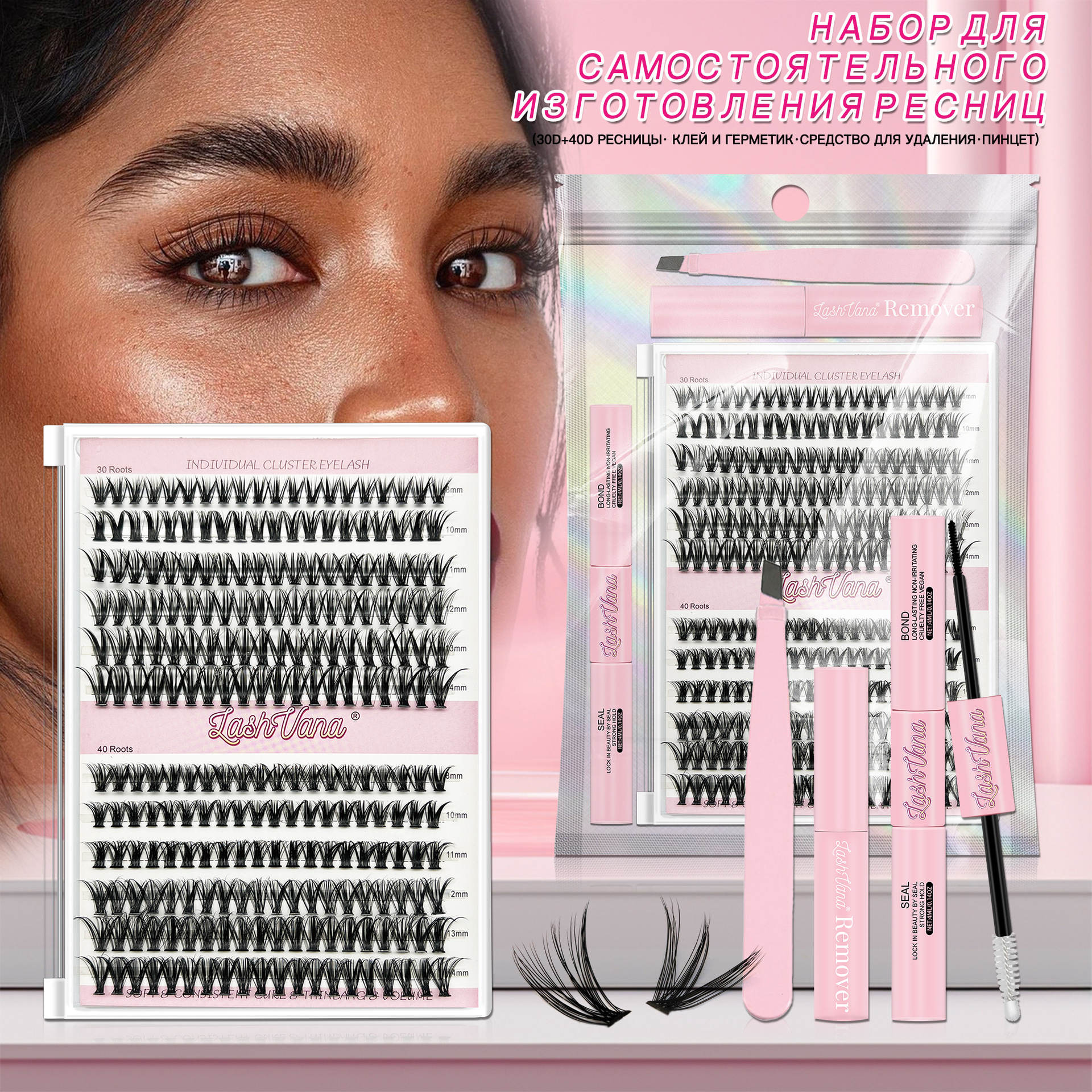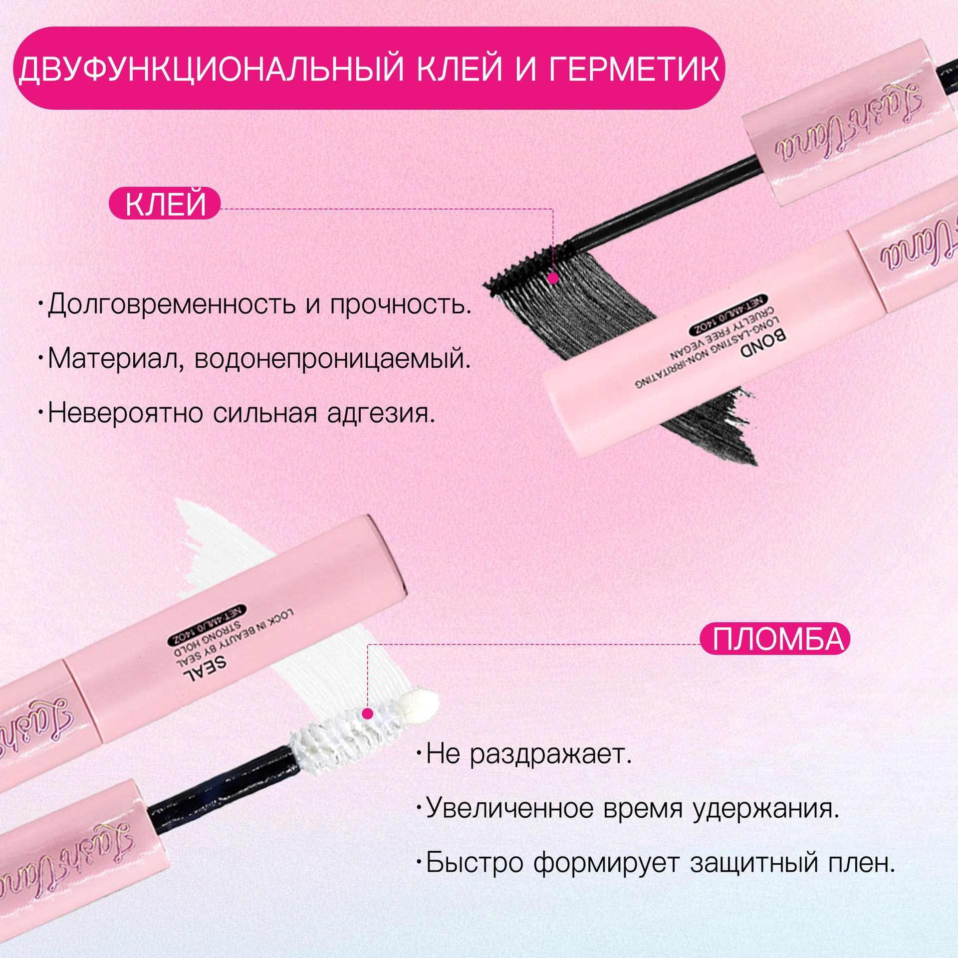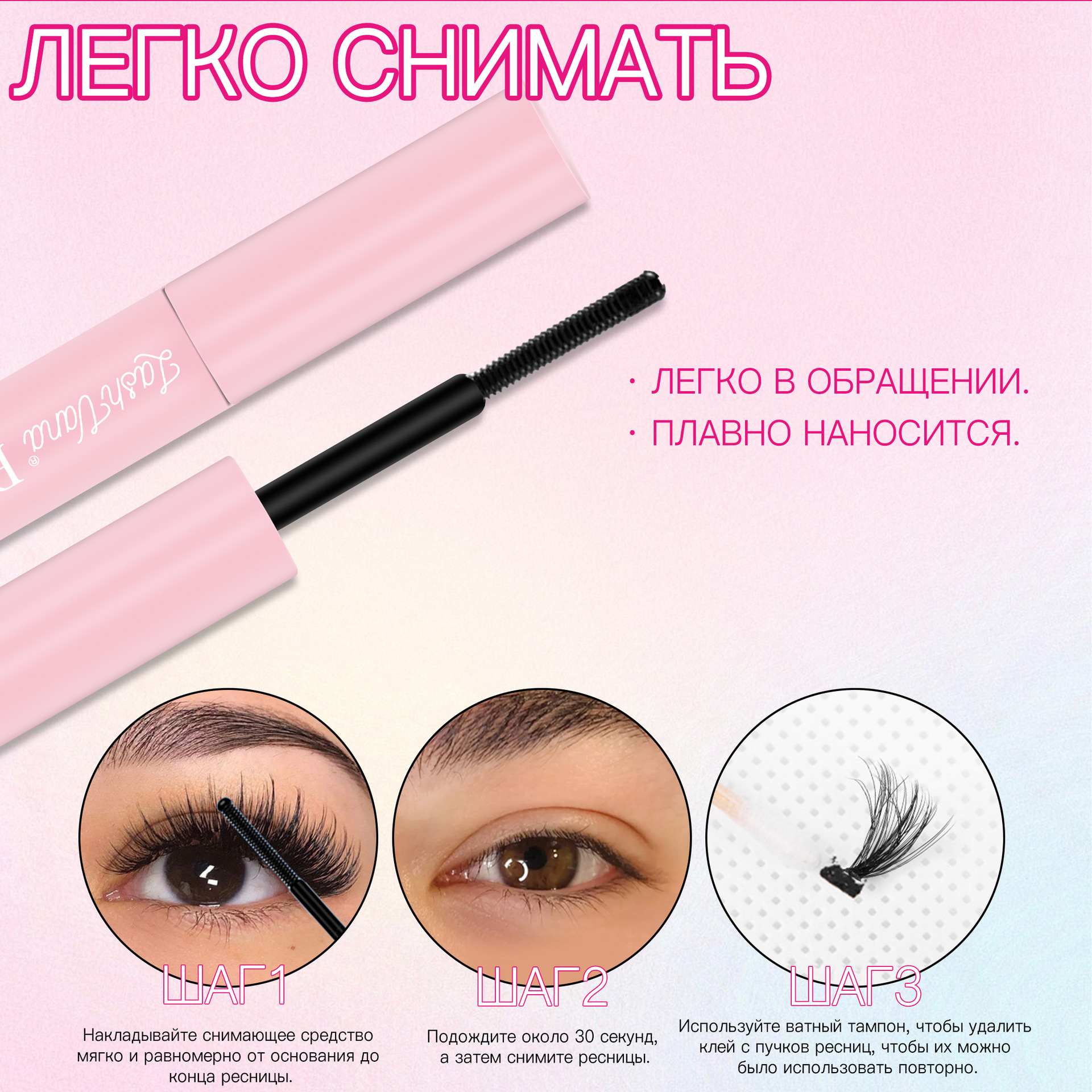 Hанесите тонкий слой клeЯ(Bond LashGlow) нa свои ресницы, yделЯЯ особоевнимание основани,где будетфиксироватьсЯ луЧок.длЯ болеевыразительного эффекта вы оЖетенанести клей немного выше, Hе наноситеeгo пo всей длине ресниц и неиспользуйте тyшь перед нанесение.ПодоЖдите 30 секунд,пока клей не станетлHпKИM.