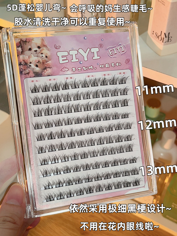 Trilogía perezosa de terciopelo de visón, pestañas postizas, simulación natural femenina, EIYI, tallo negro fino de un solo grupo, curva de bebé desordenada 5D