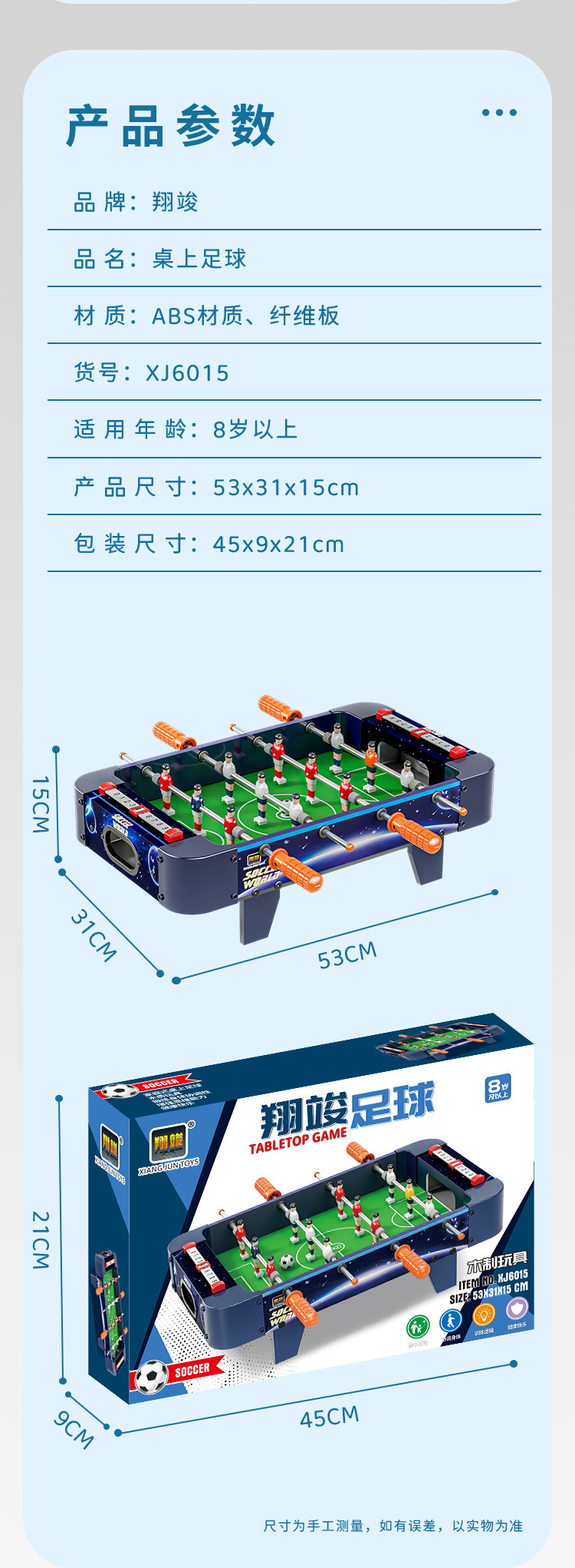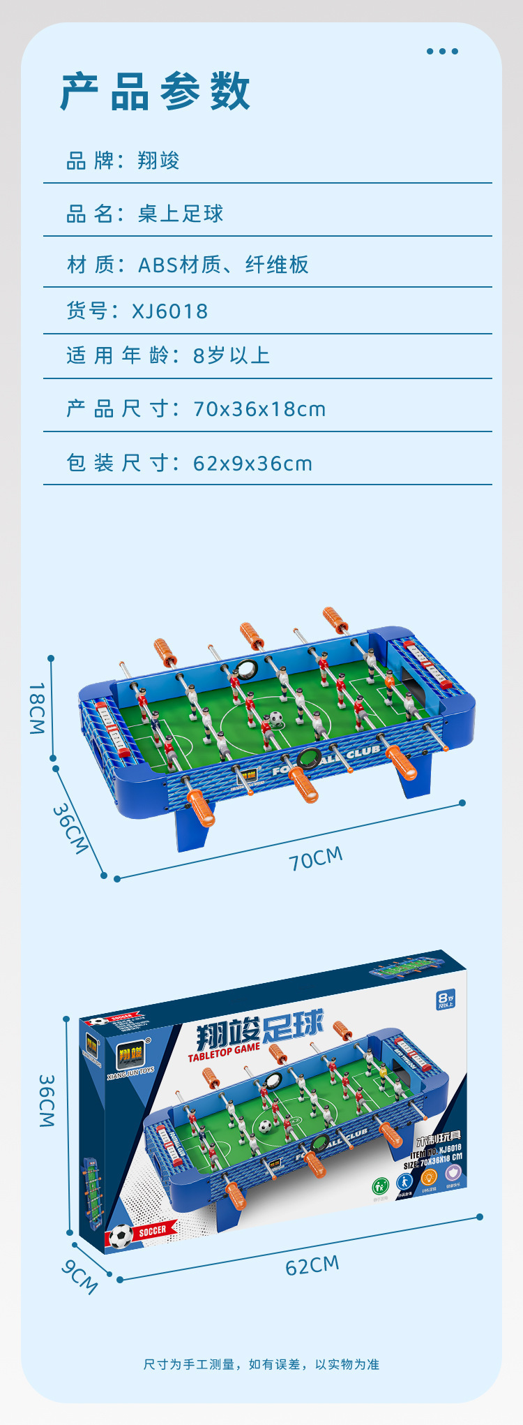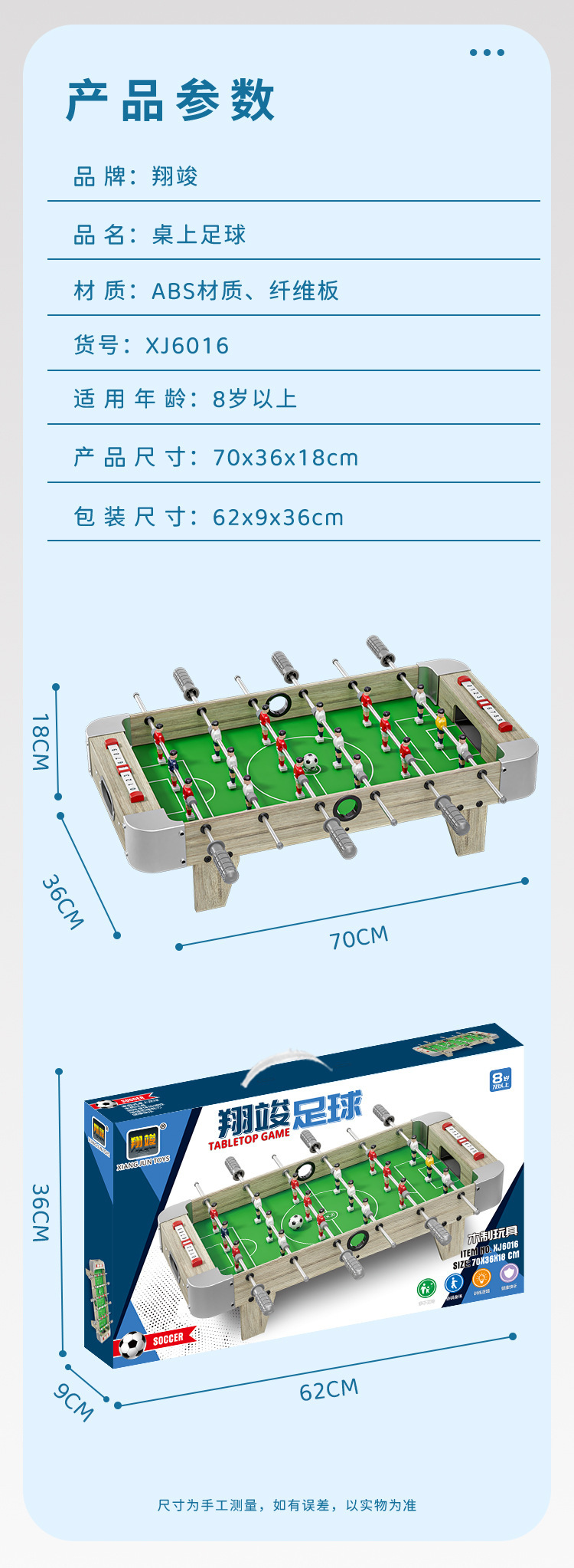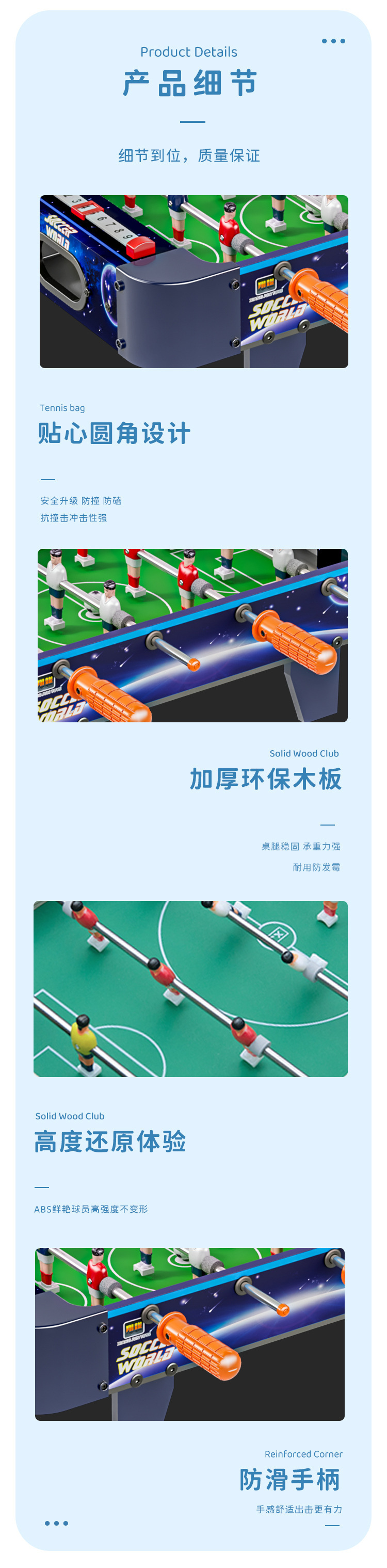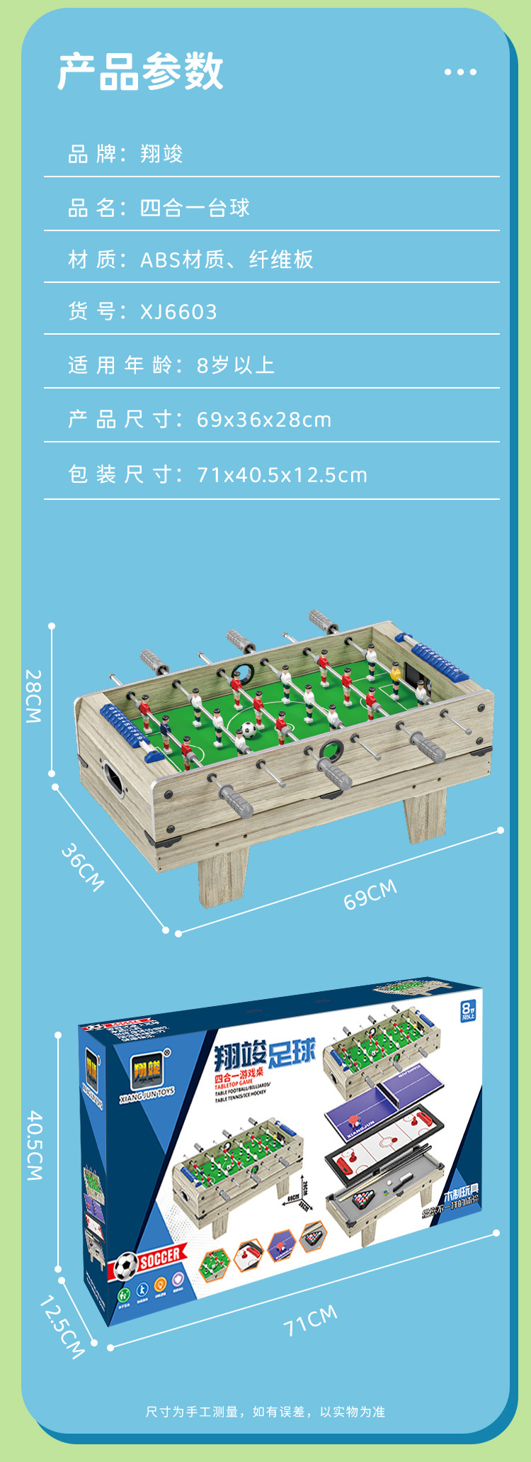 | Colores | 632 mesa de ping-pong 60cm,631 caja de color inglés mesa de tenis de mesa 90cm,6601 tres en uno 73,5 cm,6603 cuatro en uno 69cm,6012 mesa de fútbol 53cm,6015 mesa de fútbol 53cm,6016 mesa de fútbol 70cm,6018 mesa de fútbol 70cm,6020 mesa de fútbol 70cm piernas largas,6021 mesa de fútbol 70cm piernas largas |