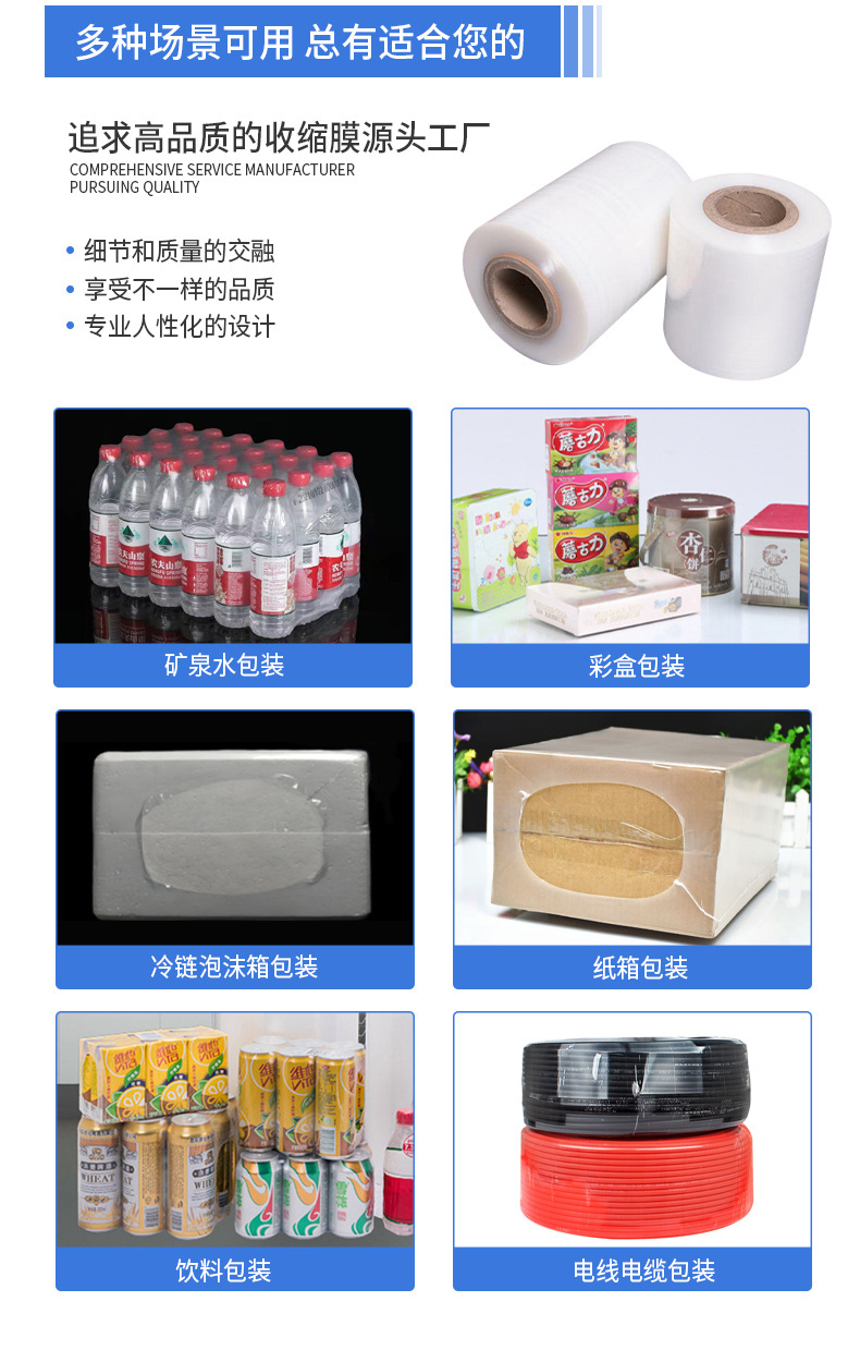 PE película termorretráctil botella de agua cartón bebida película termorretráctil boca de botella película termorretráctil transparente de alta tenacidad 550