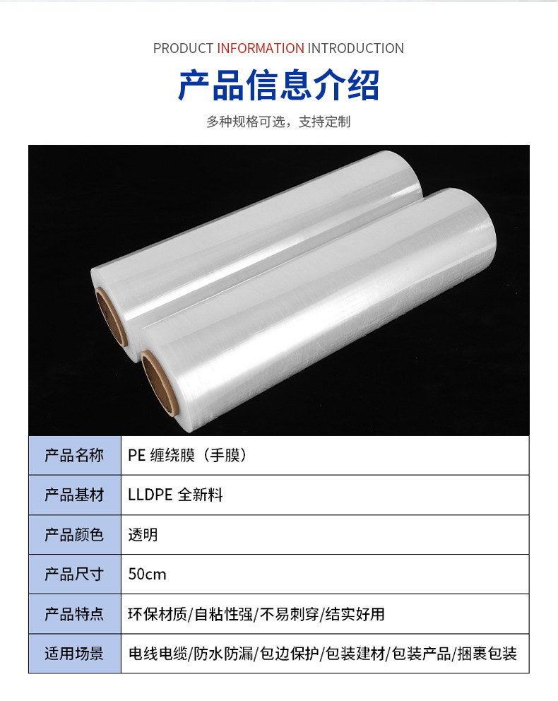 | Espesor | Ancho 10cm 0,46 kg 180 m (80 rollos por pieza) (tubo de papel fino transparente),Anchura los 25cm3kg los 300 m (8 rollos por orden del pedazo) (tubo de papel fino transparente),Ancho 30cm 4 Jin 400 m (8 rollos por pedido) (tubo de papel fino transparente),Ancho 45cm 6,6 libras 380 metros (tubo de papel delgado transparente),Ancho 45cm 10 Jin 650 m (tubo de papel delgado transparente),50cm 6kg de ancho 380 m (tubo de papel fino transparente),Ancho 50cm 7 Jin 460 m (tubo de papel fino transparente),Ancho 50cm 8 Jin 520 m (tubo de papel fino transparente),Ancho 50cm 9 Jin 590 m (tubo de papel delgado transparente),Ancho 50cm 10 Jin 650 m (tubo de papel fino transparente),Ancho 60cm 8 Jin 370 m (tubo de papel delgado transparente),Ancho 60cm 10 Jin 450 m (tubo de papel fino transparente),Ancho 75cm 10 Jin 330 m (tubo de papel fino transparente),Ancho 80cm 10 Jin 310 M (tubo de papel fino transparente),Ancho 100cm 10 Jin 270 m (tubo de papel delgado transparente) |