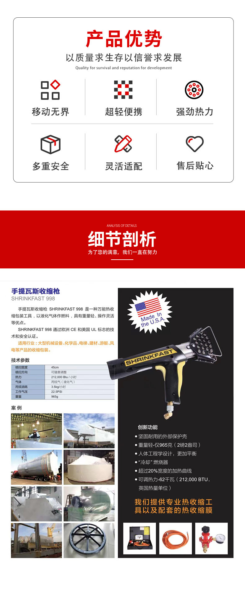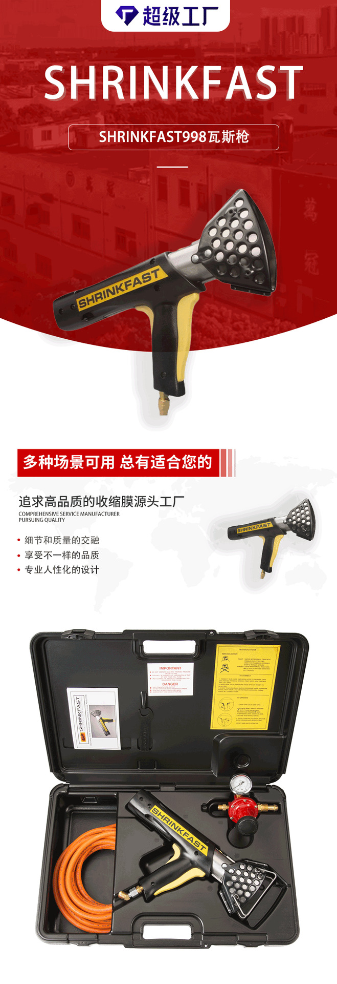Pistola de termocontracción a gas americana shrinkfast998, pistola de pulverización para película termocontraíble, herramienta de termocontracción para película de PE, piezas de repuesto.