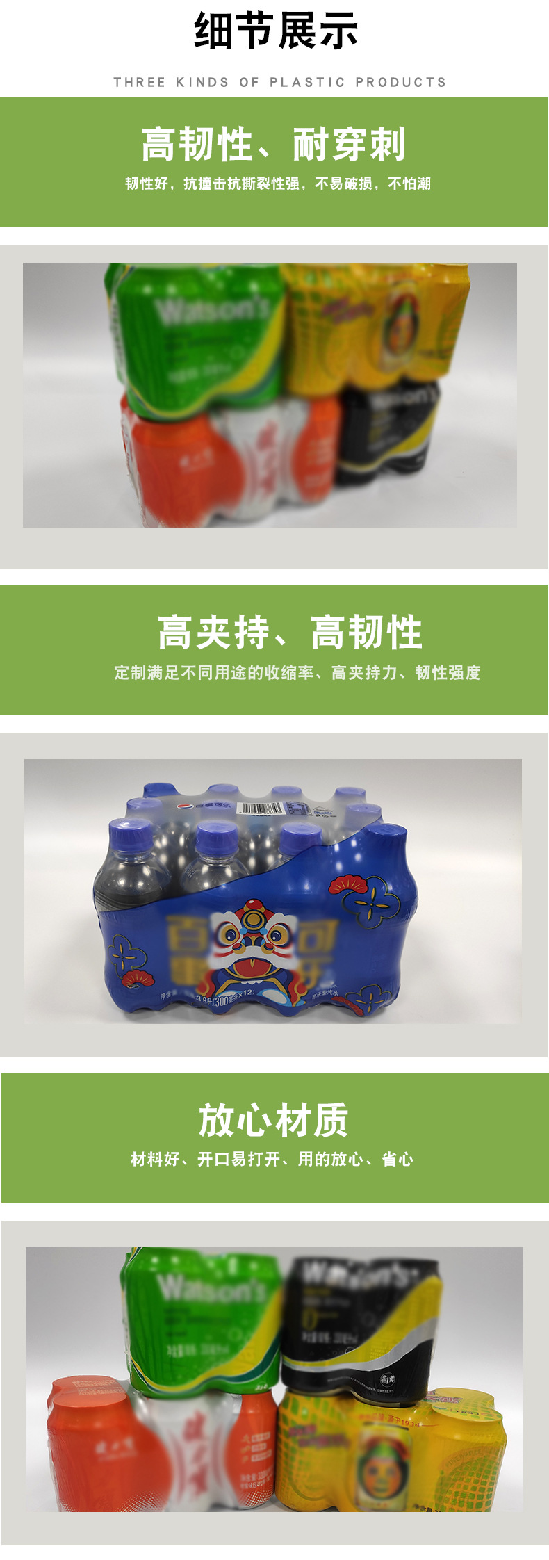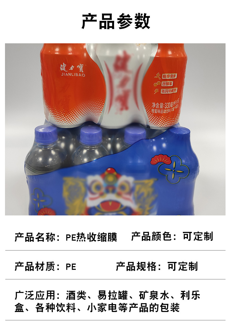 Latas película retráctil espesado plástico transparente sellado película impresión automática plegable cerveza agua mineral PE película retráctil