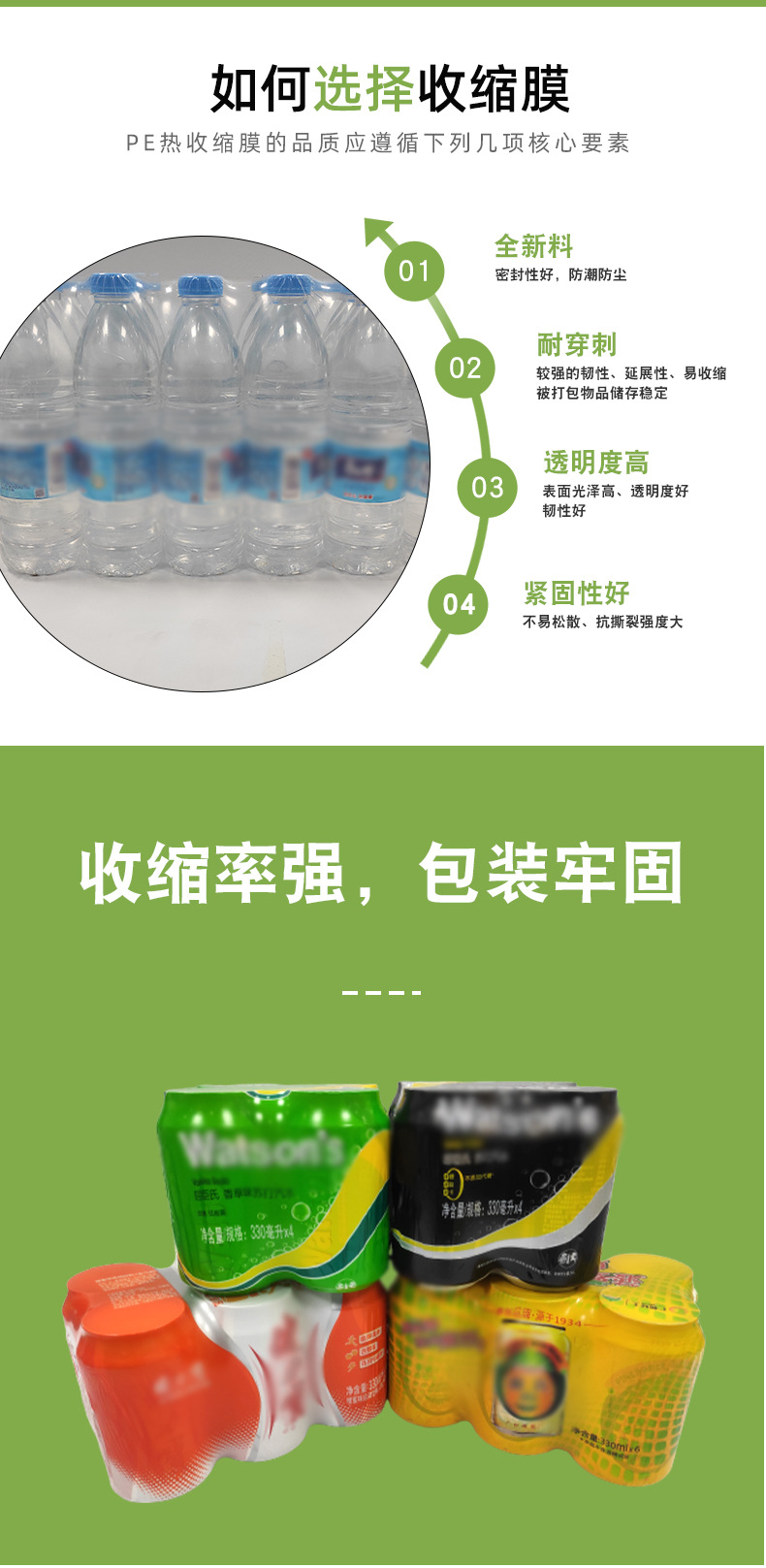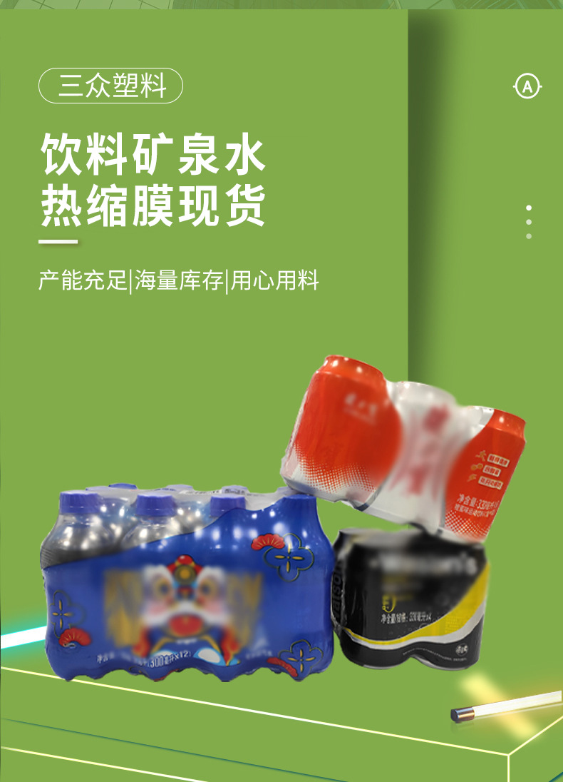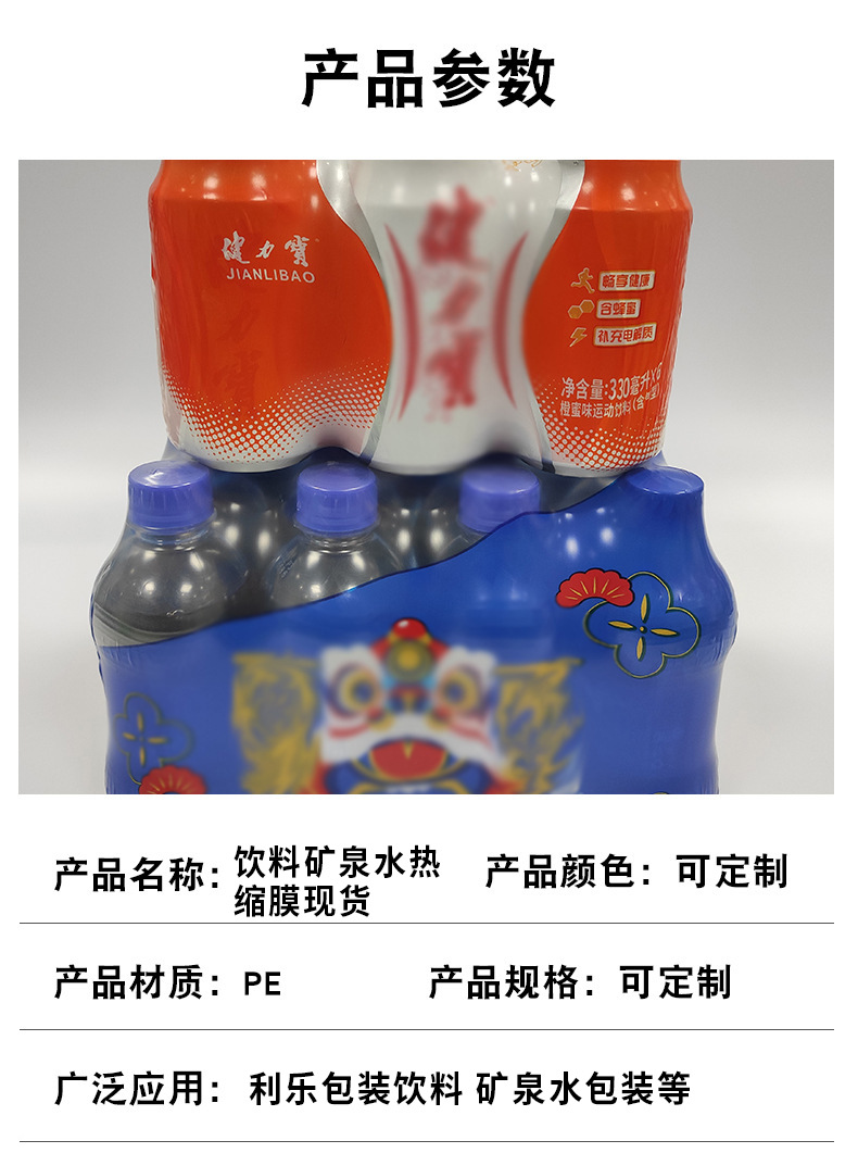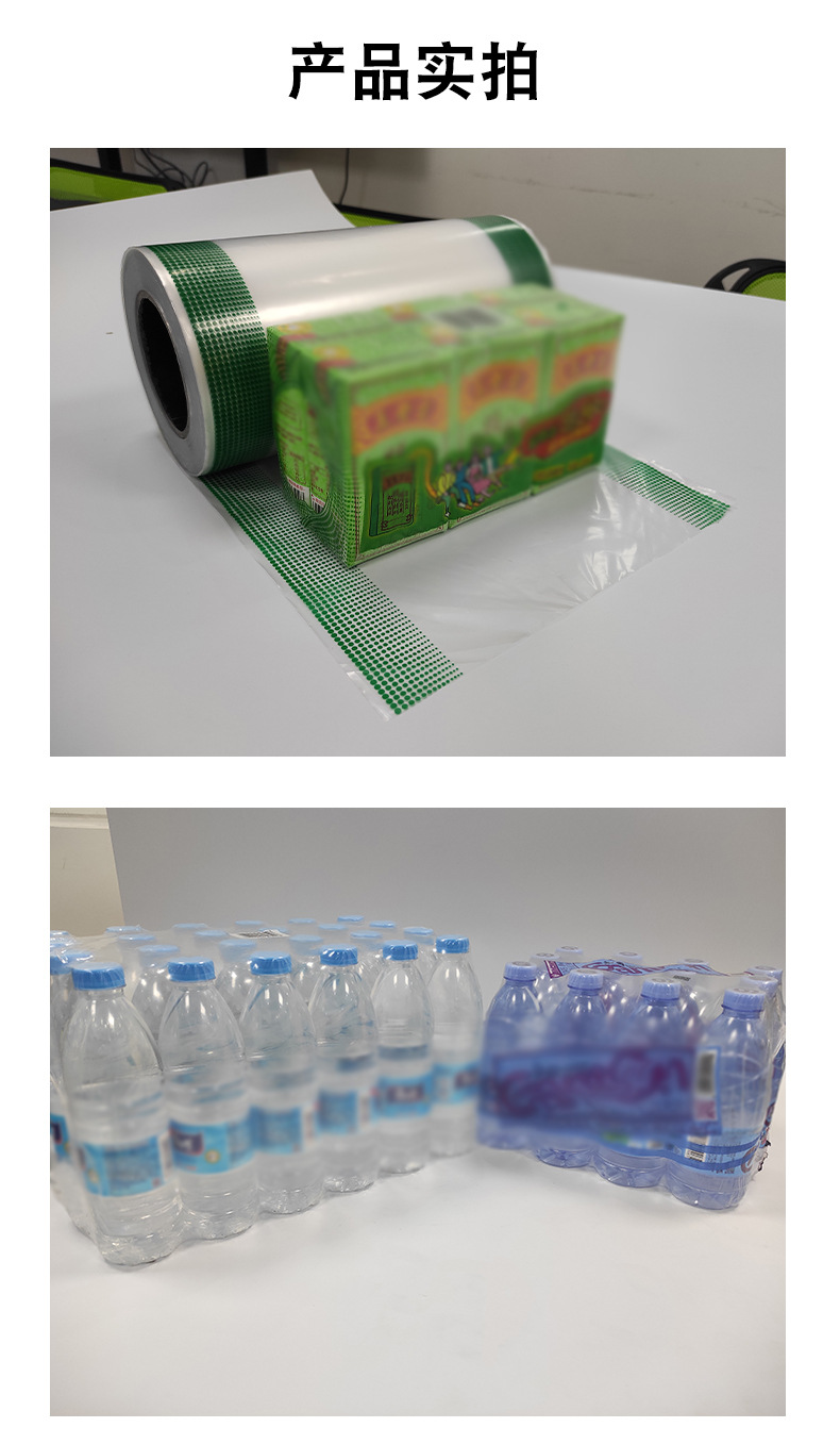 Spot al por mayor PE película retráctil película de embalaje de bebidas película termorretráctil caja Tetra Pak botella de cole película de plástico bolsa retráctil