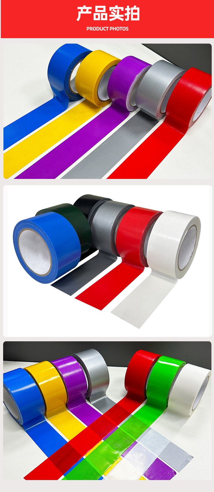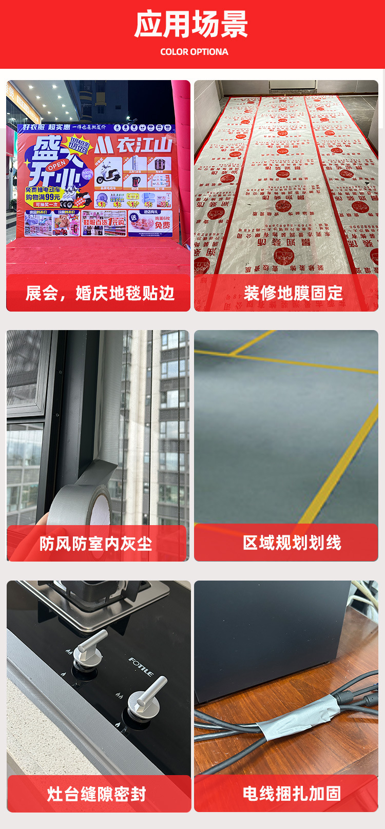 | Aplicación del producto | Cinta a prueba de viento, alta viscosidad, fácil de rasgar, costura de alfombra de boda |