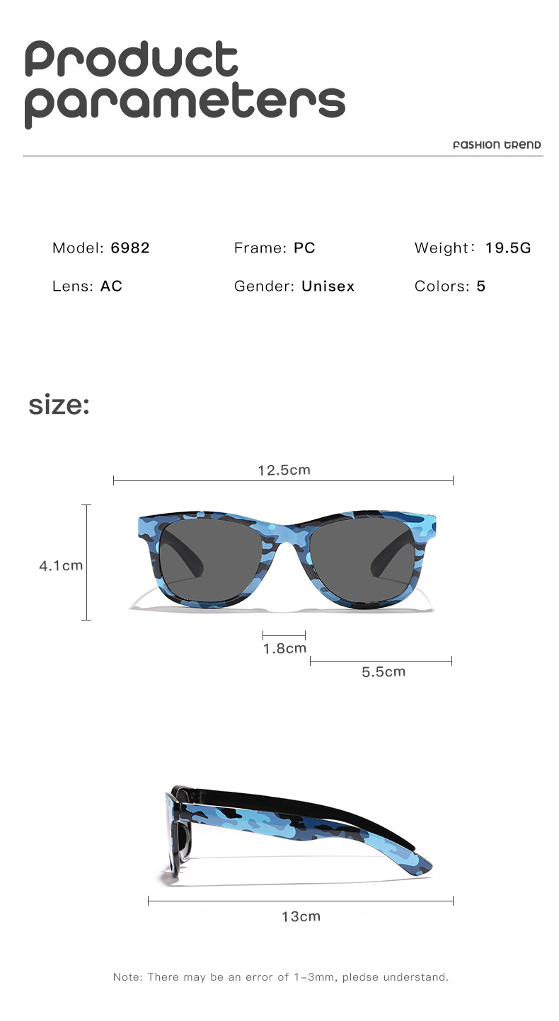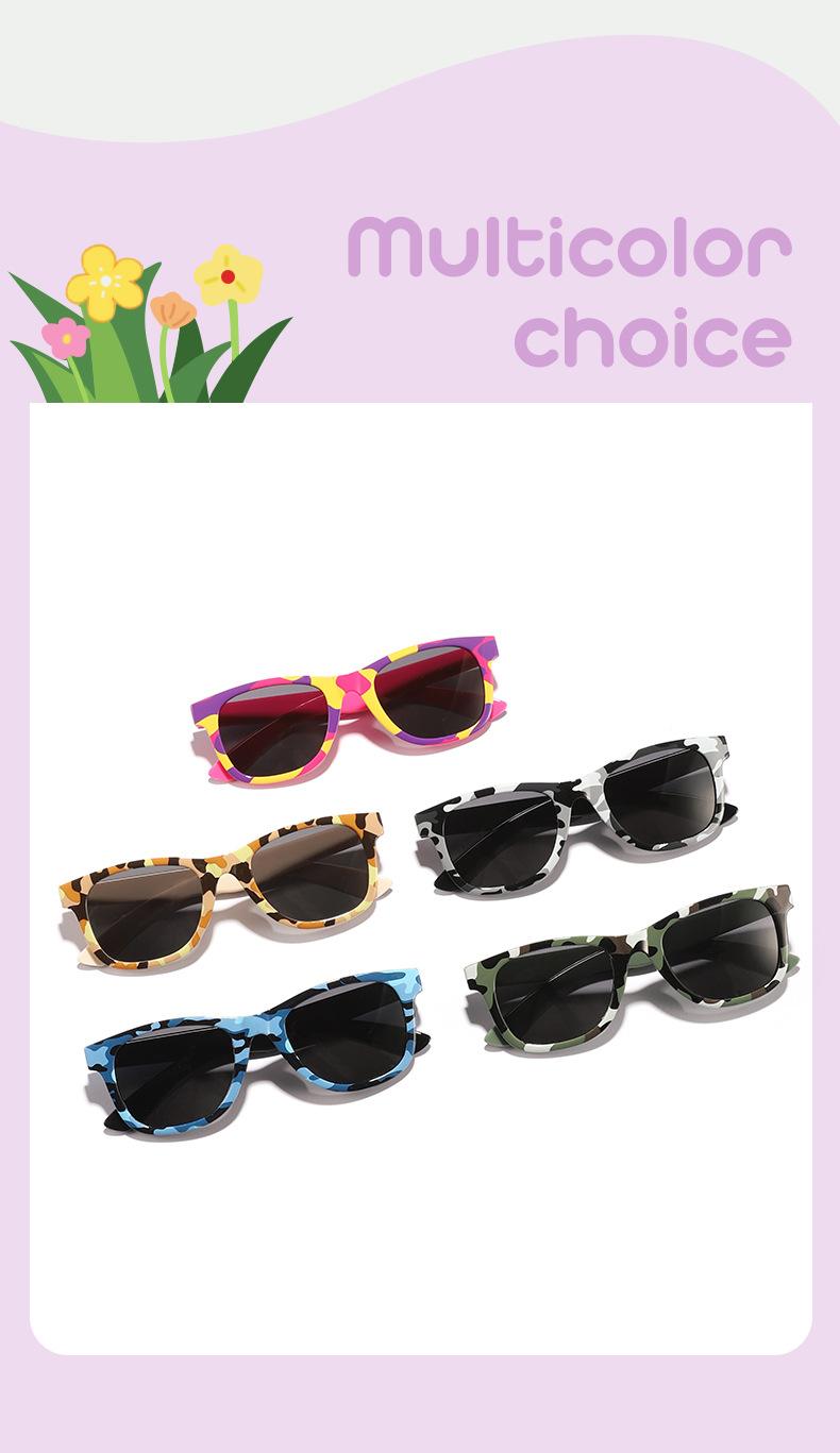 Nuevas gafas de sol de todo fósforo de la serie de camuflaje para niños transfronterizos, gafas de sol cuadradas de colores para bebés lindos Sunglasses