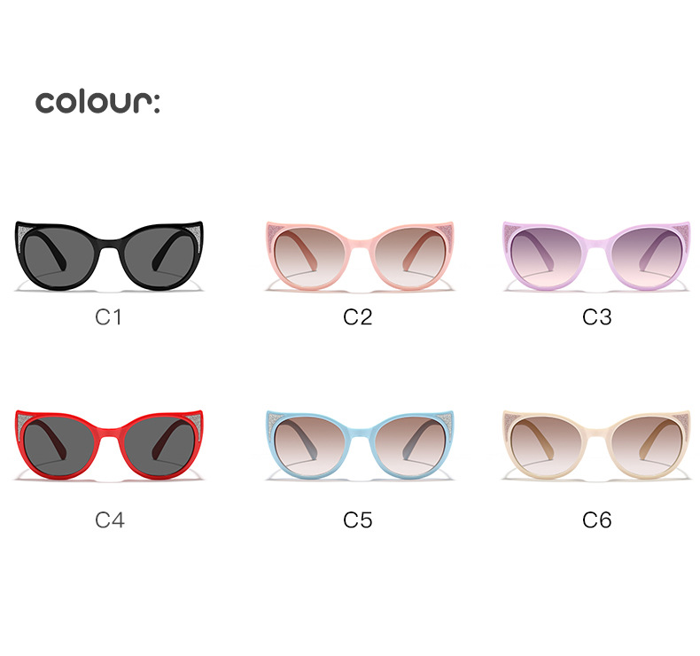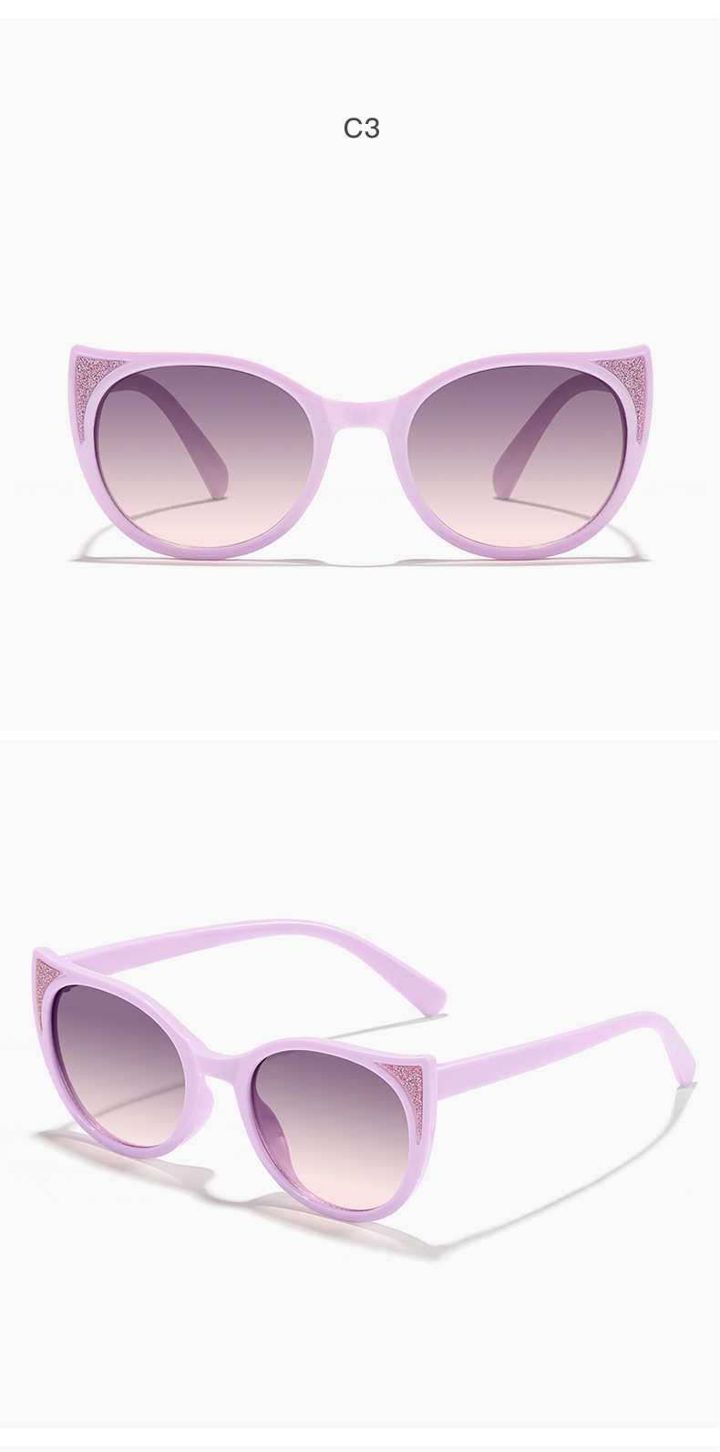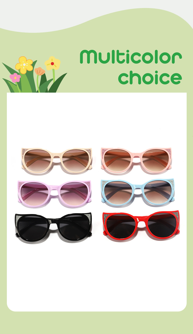 2024新款儿童可爱猫耳细闪ins风马卡龙配色防晒墨镜户外太阳镜