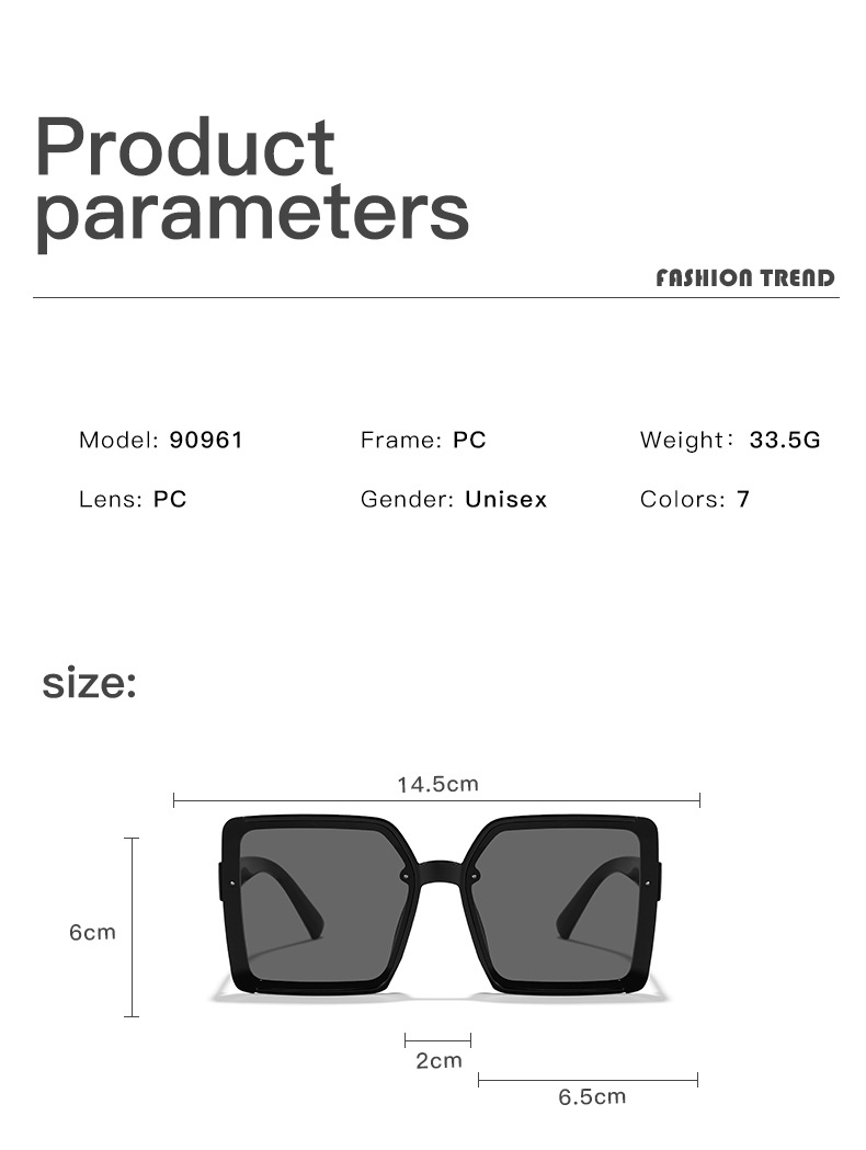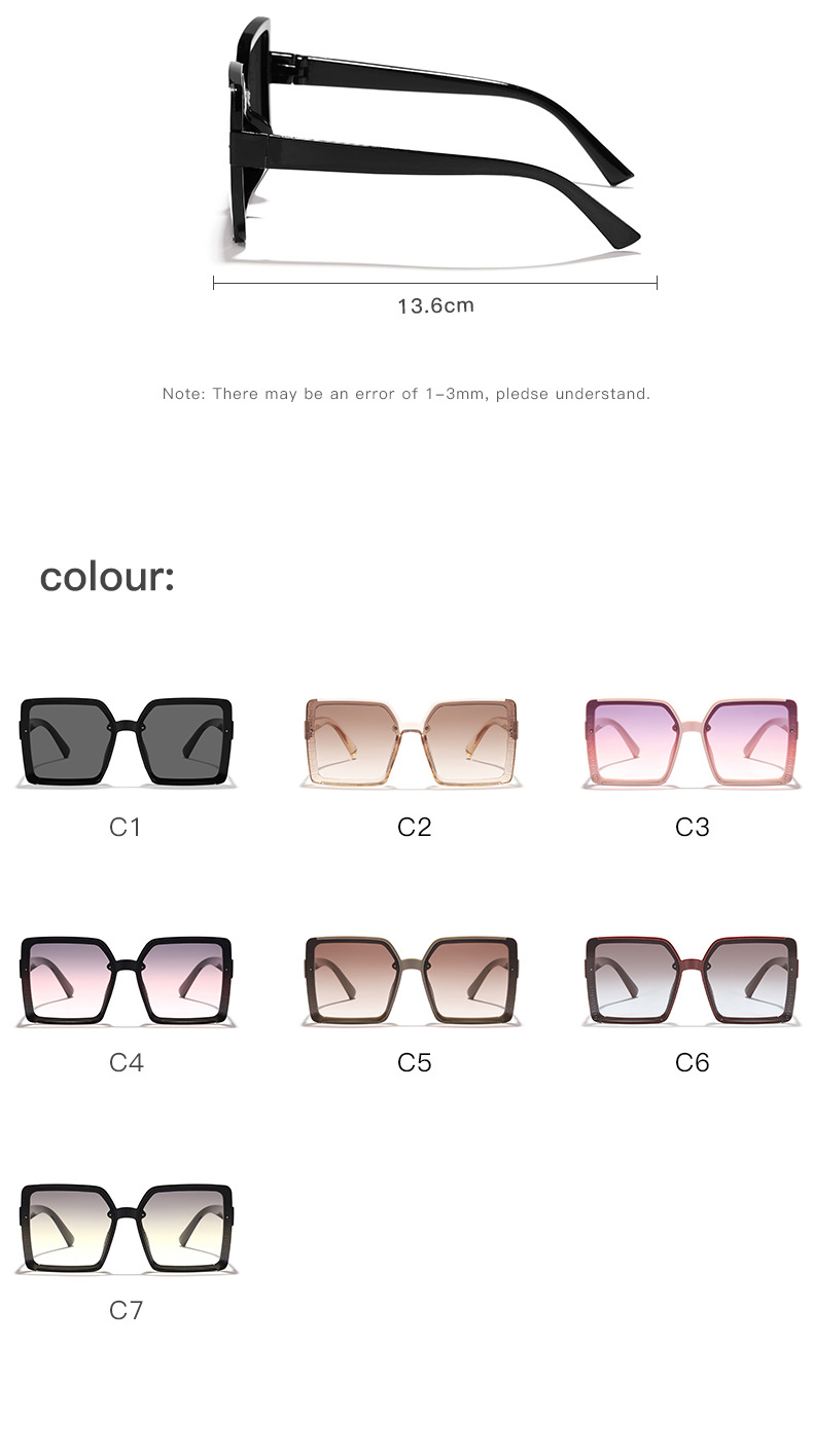 跨境新款韩版大方框素颜显脸小墨镜PC镜片潮流时尚穿搭必备太阳镜