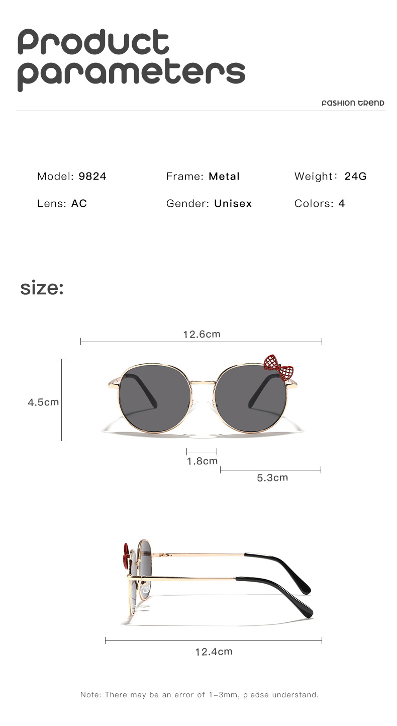 Nuevos accesorios de lazo de marco redondo de metal transfronterizo gafas de sol lindas gafas de sol de protección solar esenciales para la moda del bebé