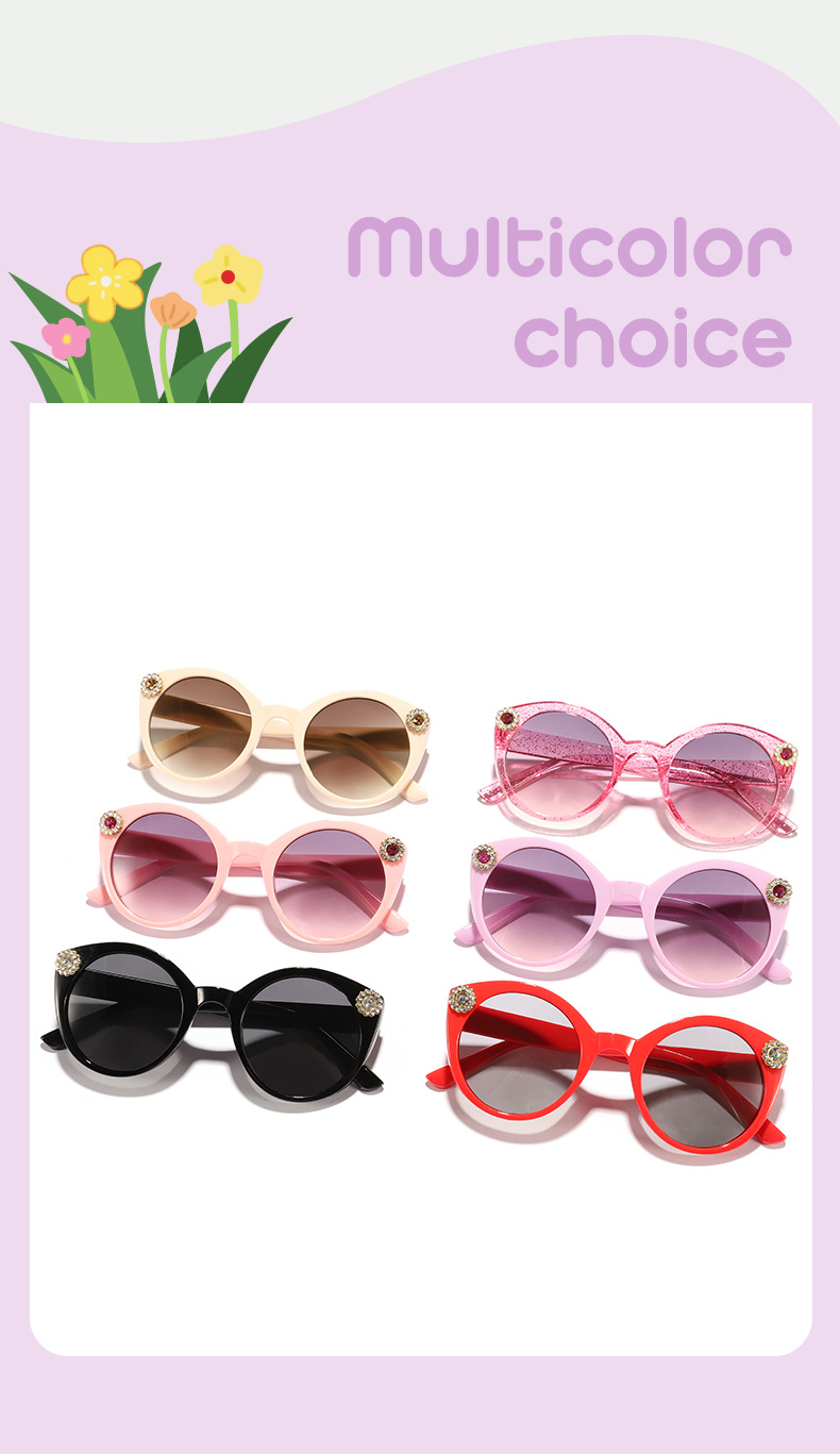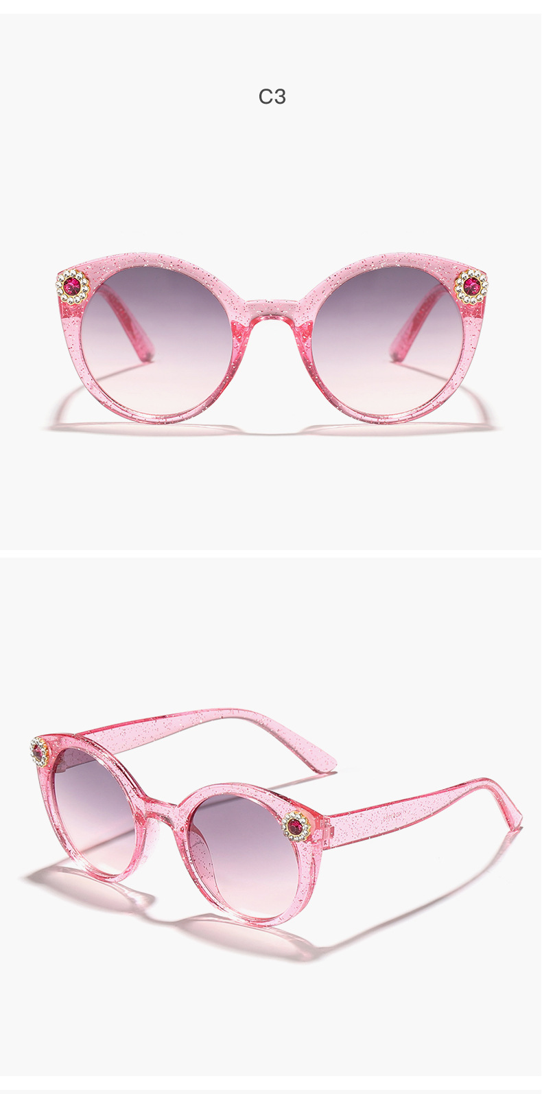 Gafas de sol de color caramelo con marco redondo de diamantes transfronterizos para niños Gafas de sol de tiro callejero de moda para niños y niñas Sunglasses