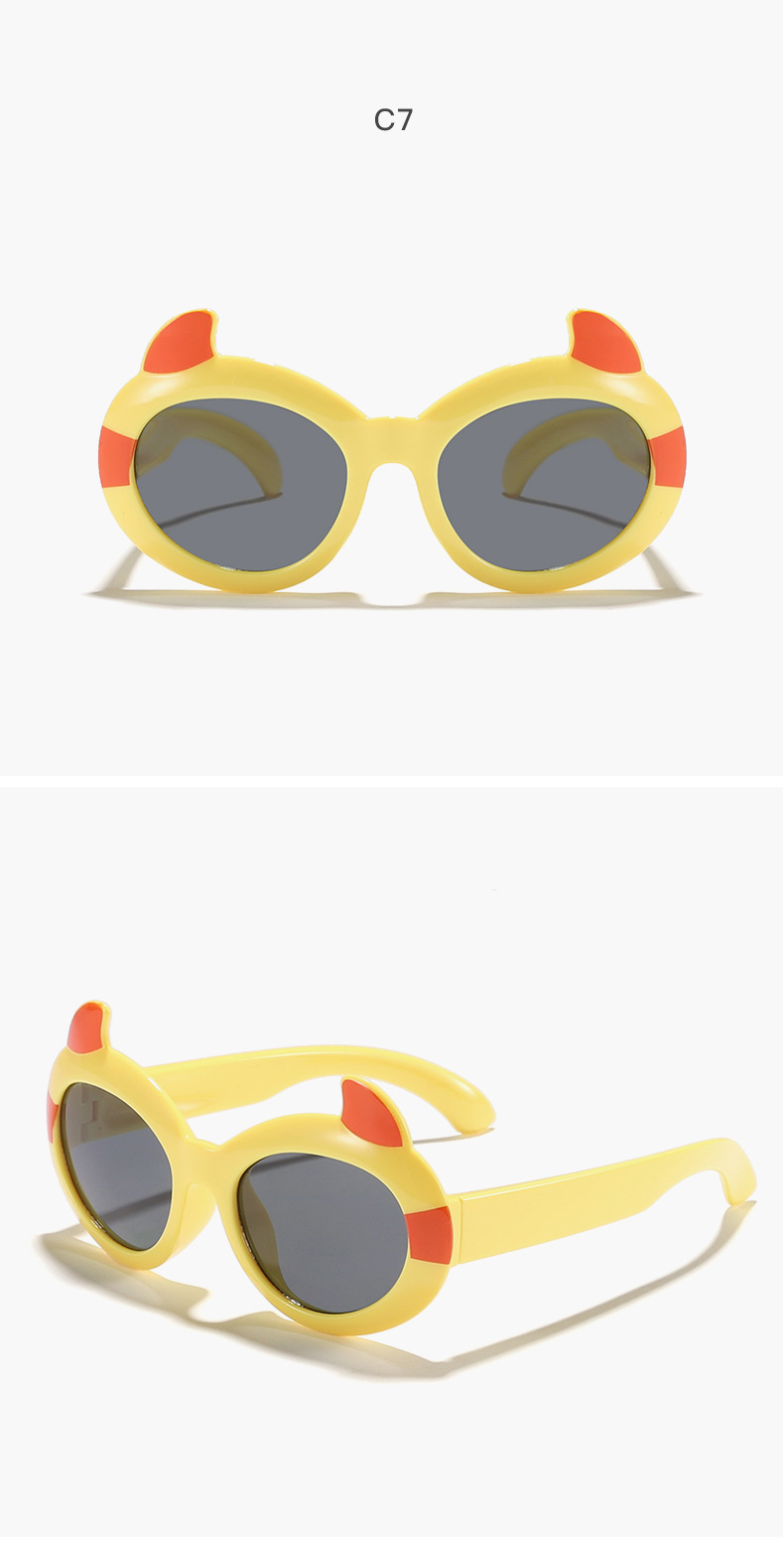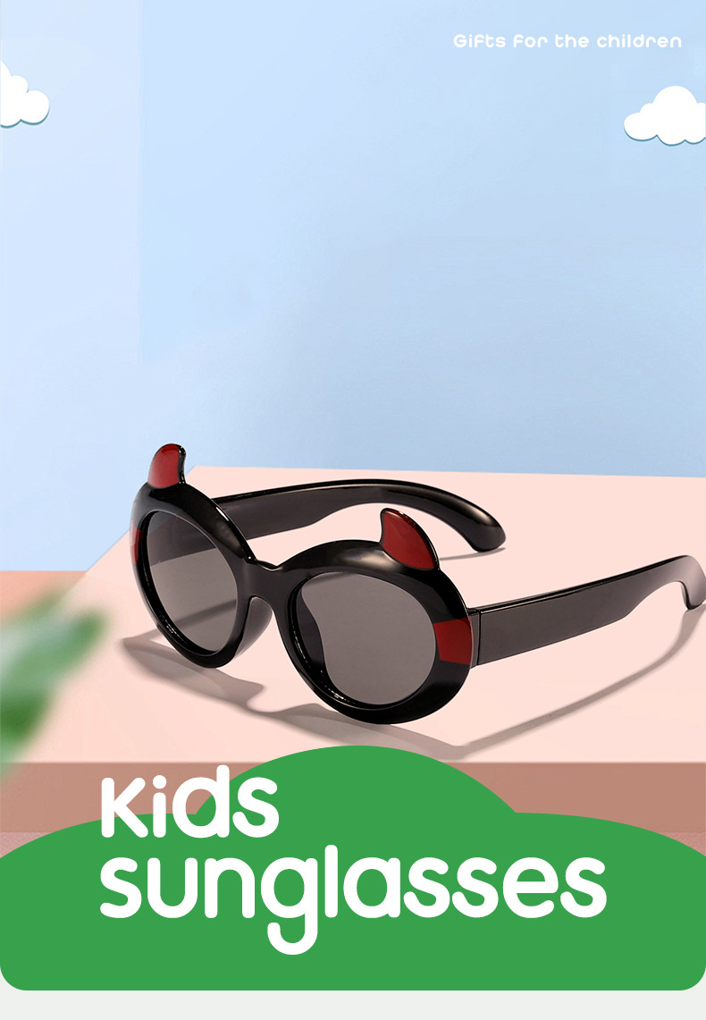 2024 niños divertidos y lindos dibujos animados pequeño diablo tendencia gafas de sol de moda lindo bebé gafas de sol de alta gama