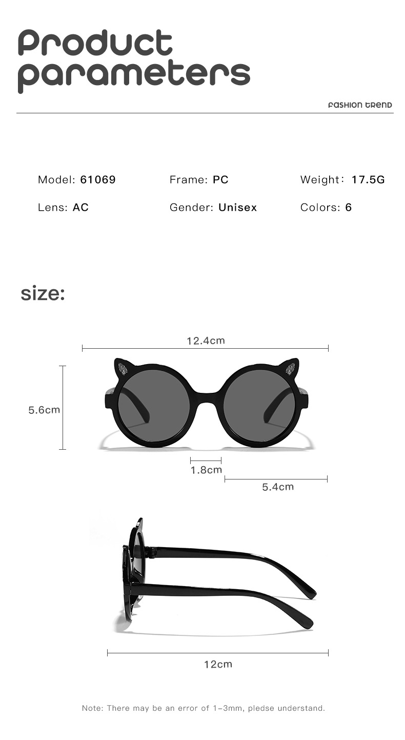 Nuevas gafas de sol para orejas de gato con montura redonda para niños