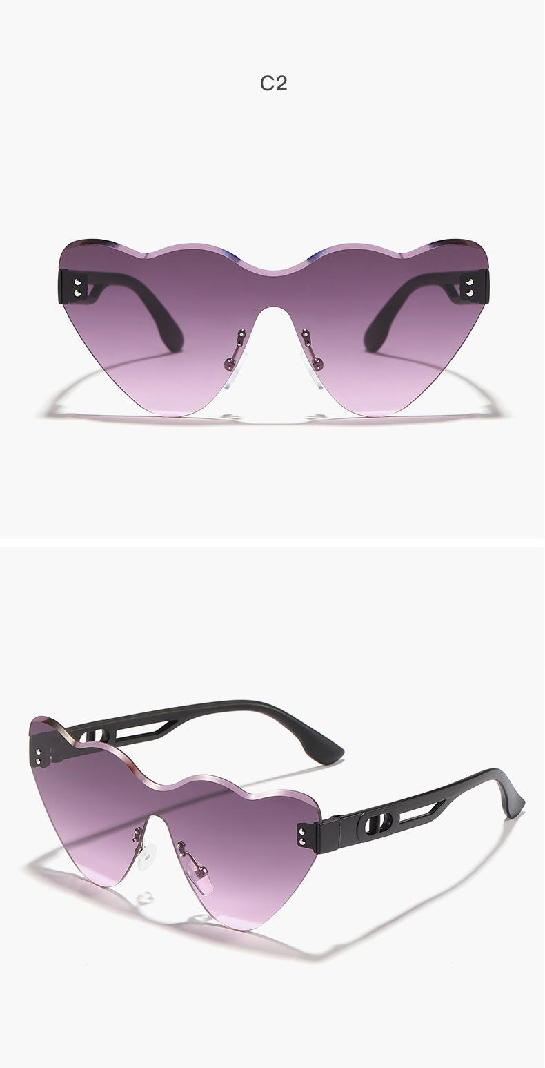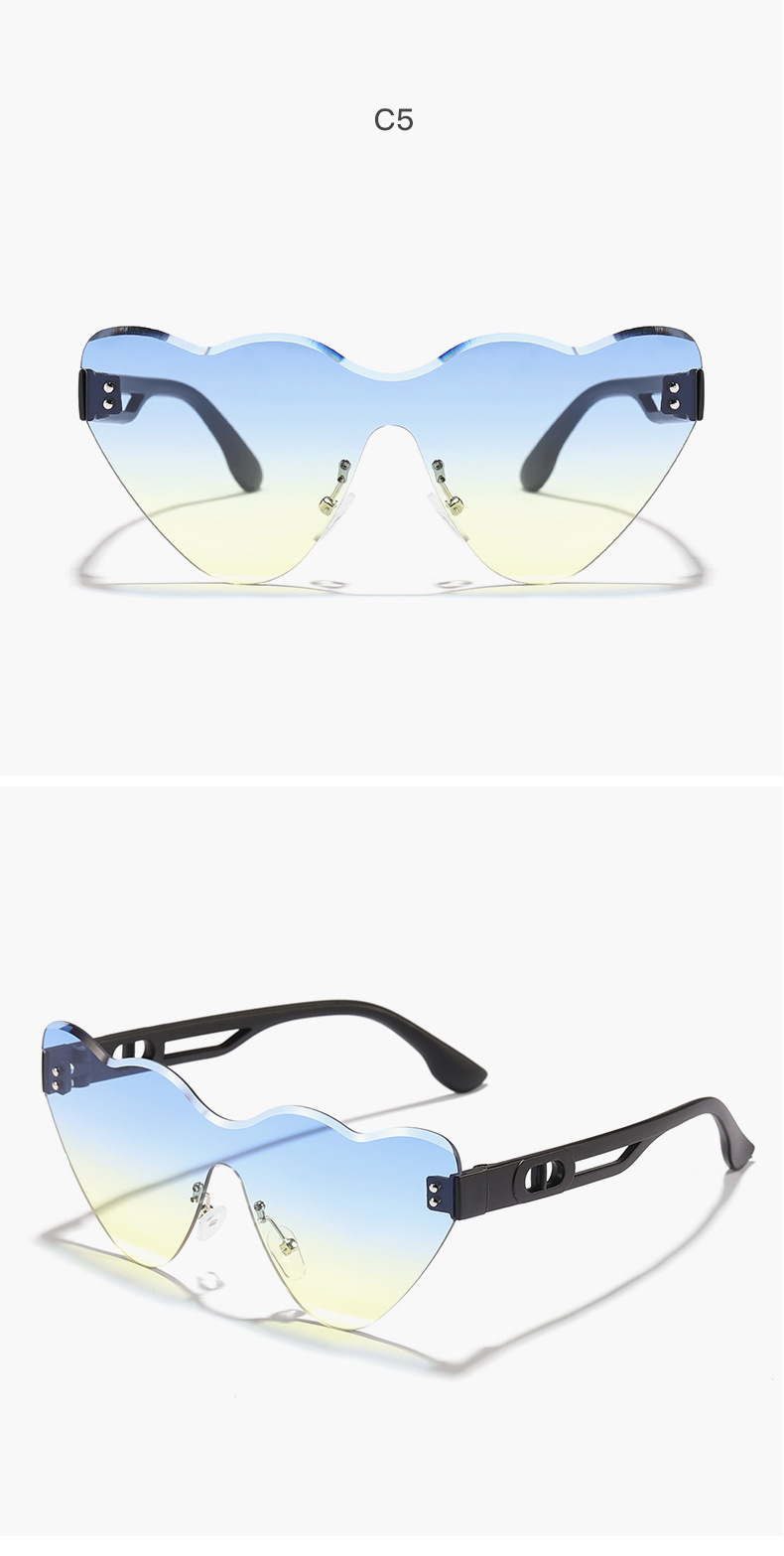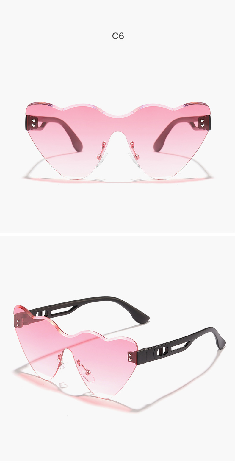 2024 niños nuevo estilo en forma de corazón, gafas de sol de moda de corte sin marco, gafas de sol de playa de verano para PC