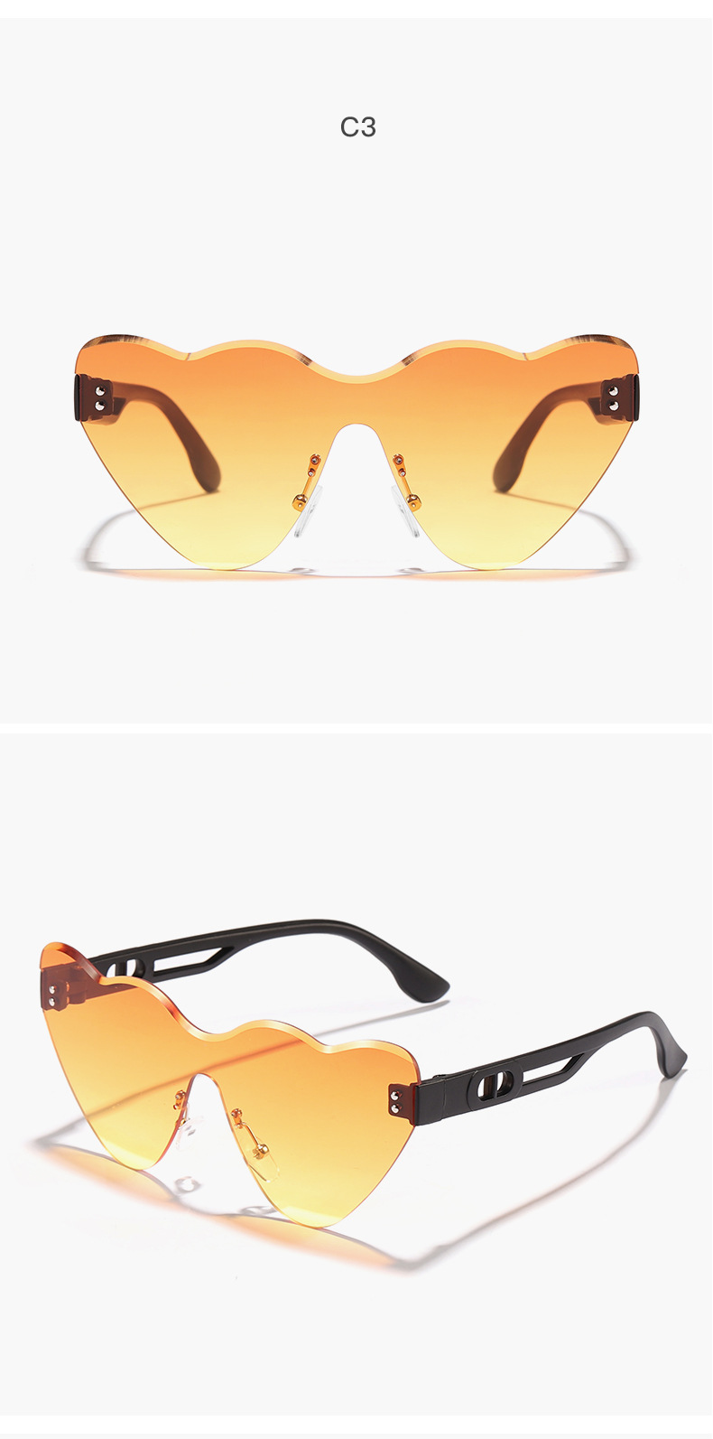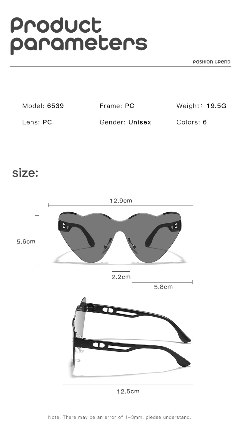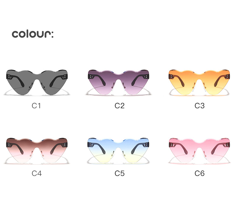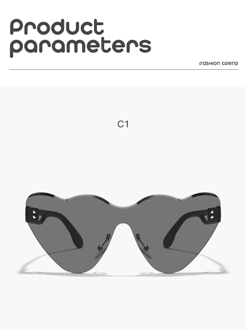 2024 niños nuevo estilo en forma de corazón, gafas de sol de moda de corte sin marco, gafas de sol de playa de verano para PC