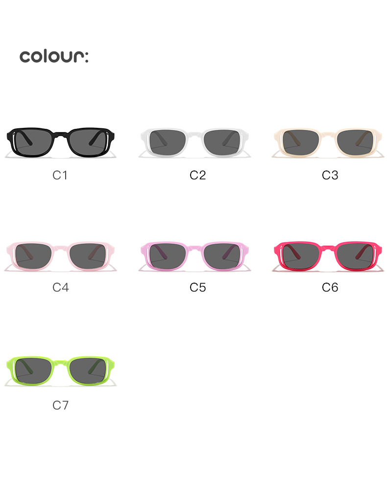 2024新款儿童复古小框长方形Y2K马卡龙配色防晒墨镜户外穿搭必备
