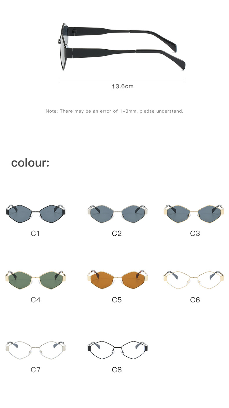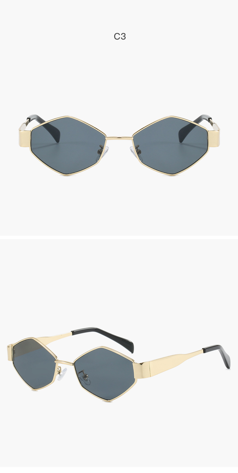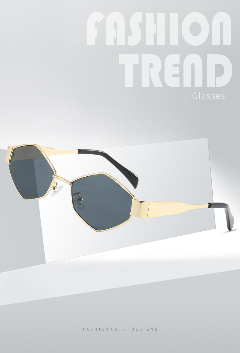 2024欧美时尚多边形不规则金属太阳镜女潮流个性特色宽镜腿墨镜