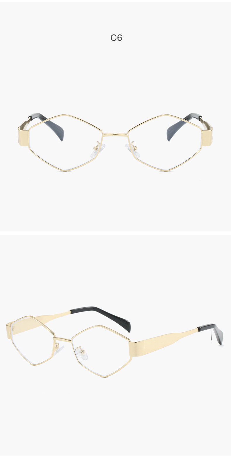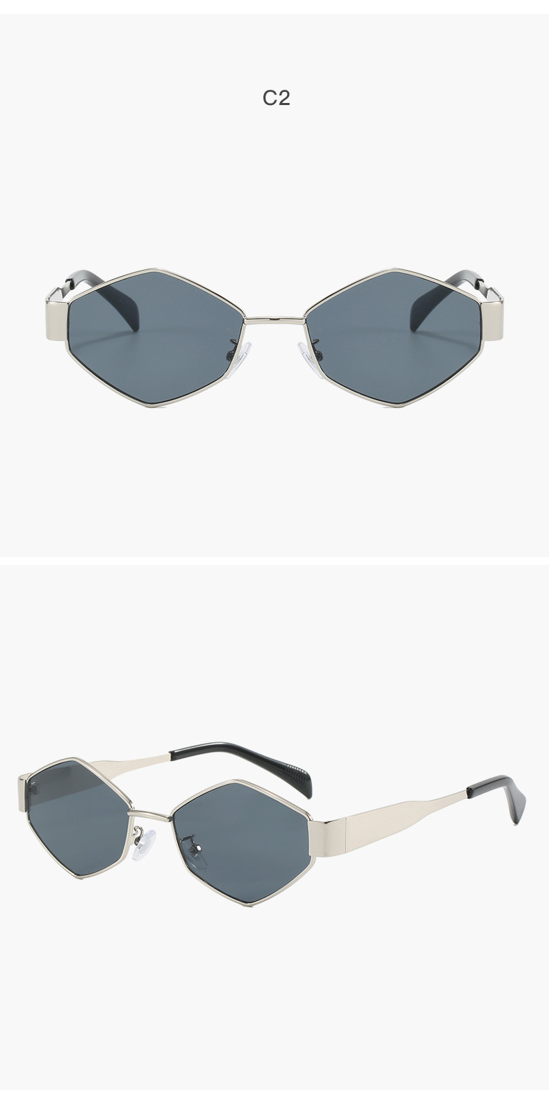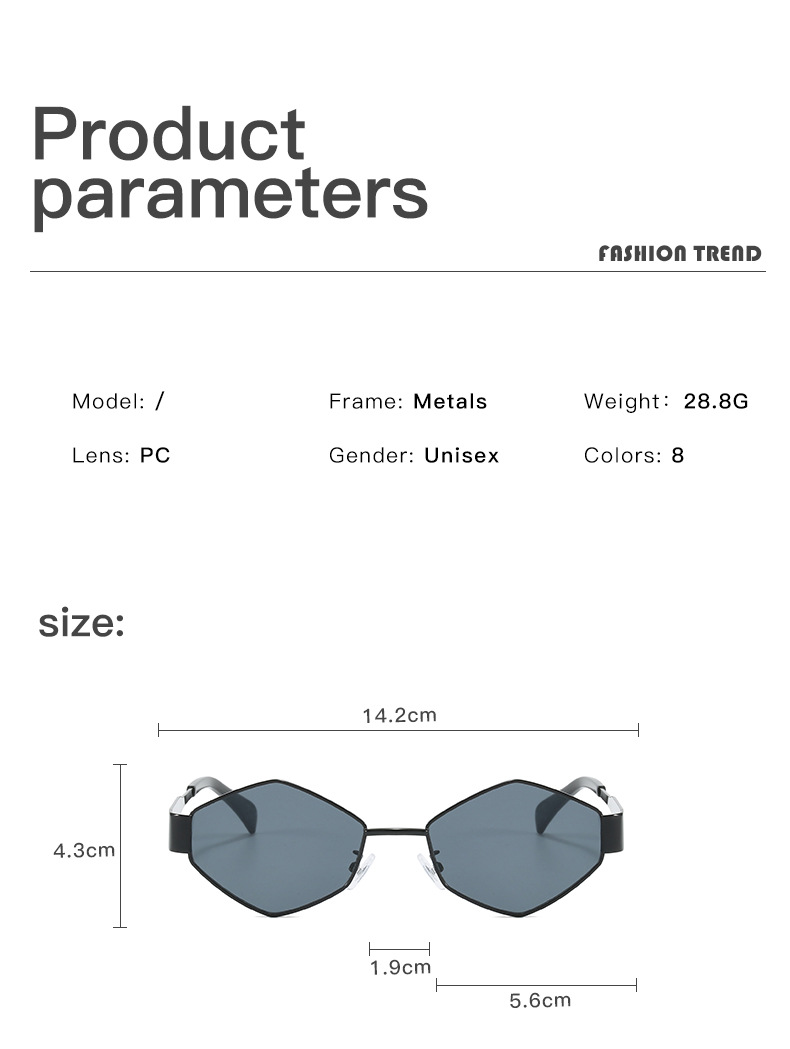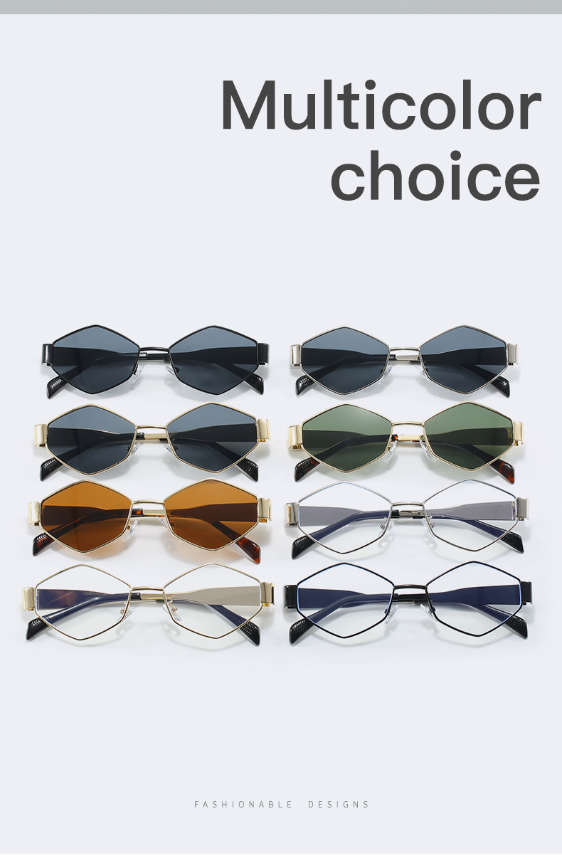 2024欧美时尚多边形不规则金属太阳镜女潮流个性特色宽镜腿墨镜