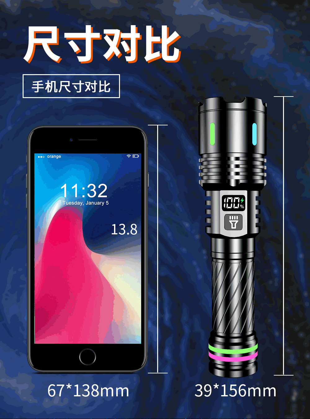 | Colores | X11F caja de color neutro 15W blanco láser 50CM punch cable 18650/2000MAH |