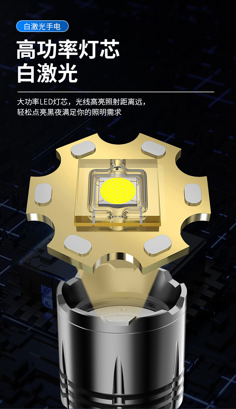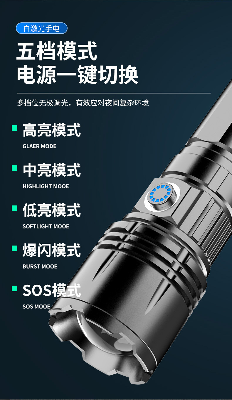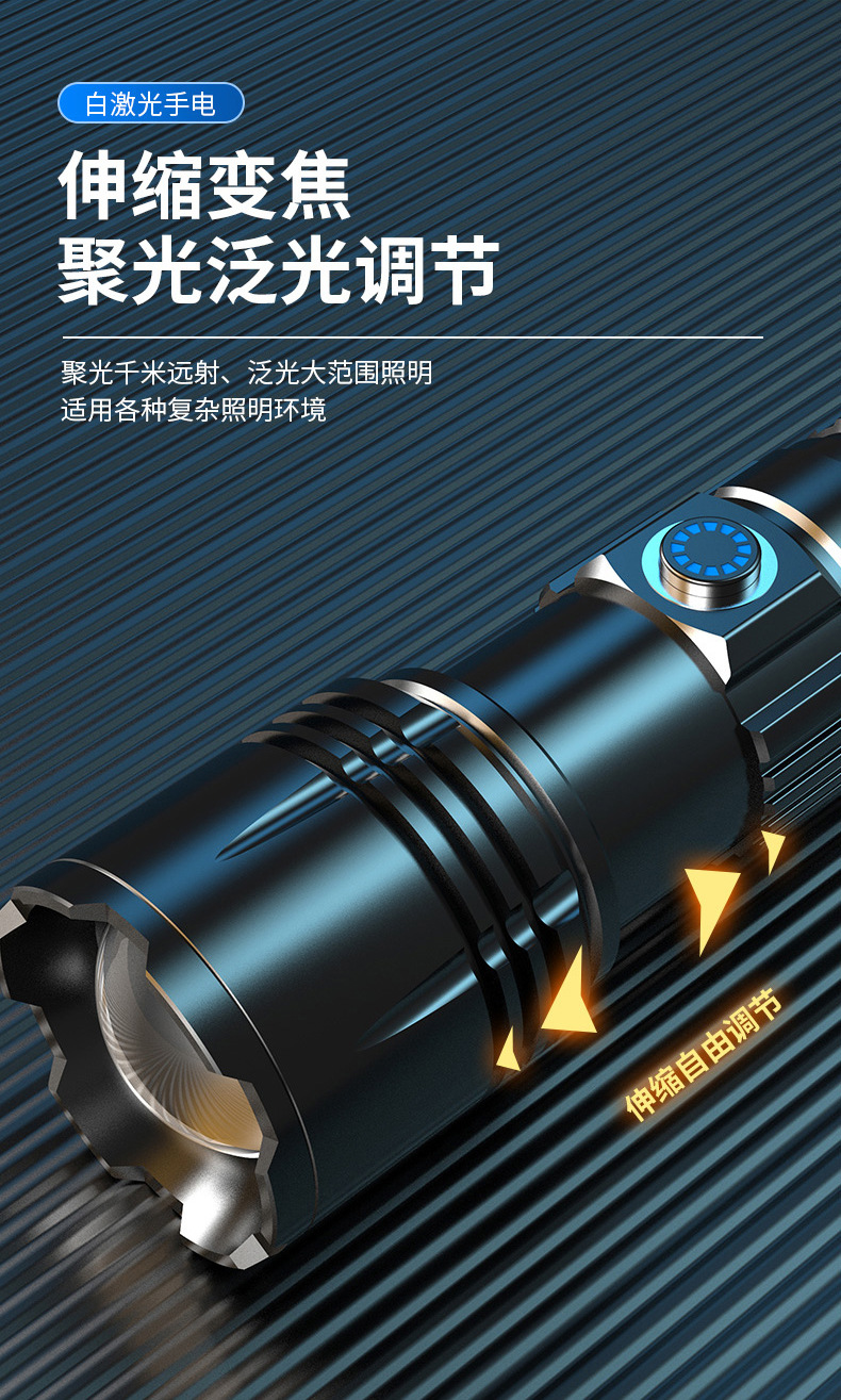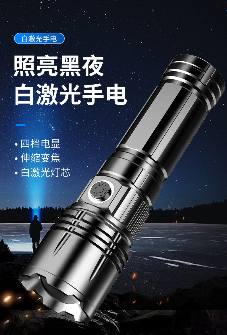 Nueva linterna pequeña, linterna de luz fuerte de largo alcance con láser blanco, batería extraíble de aleación de aluminio, linterna portátil al por mayor
