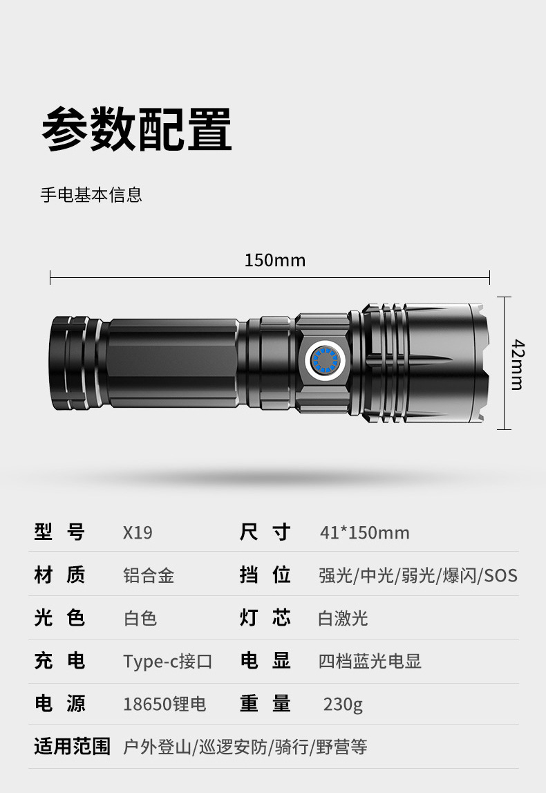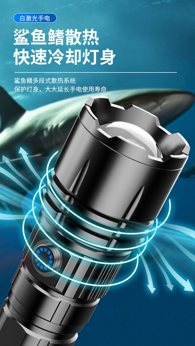 Linterna táctica multifuncional transfronteriza, pistola láser de luz fuerte, zoom al aire libre, pantalla digital, carga, linterna láser blanca de 20 vatios