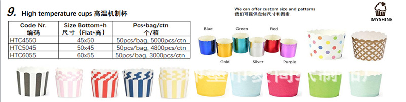 说 明:纸杯是压折在一起的,相当方便好用,食品级木浆纸,PE淋膜,无异味、不褪色、可烤、防油、耐高温,易脱模。