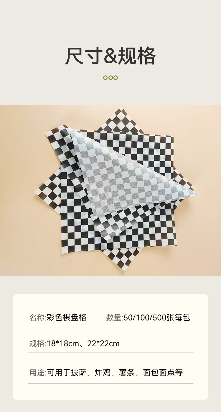 | Número de artículo | Papel a prueba de aceite para tablero de ajedrez de color |