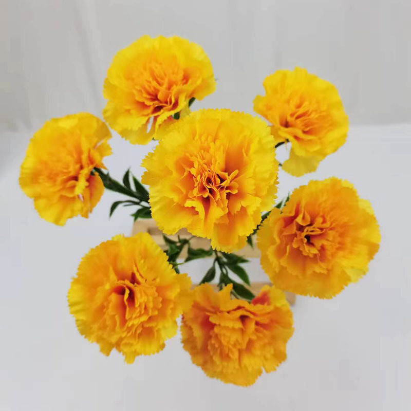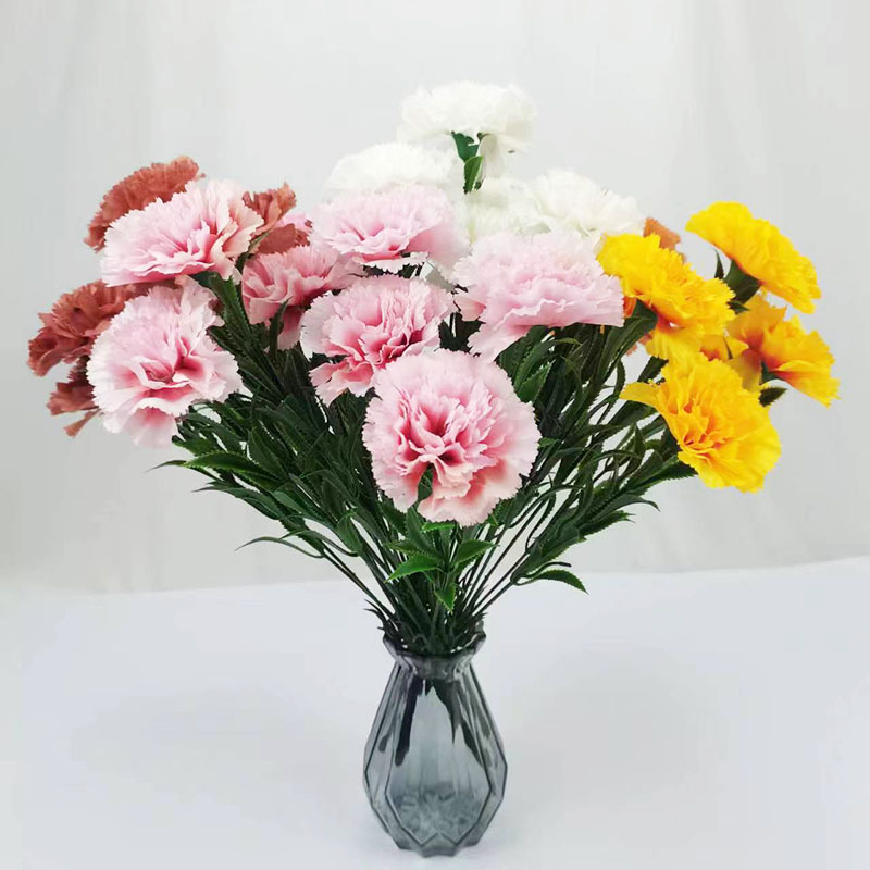 Xiaoyu Simulation Flower 7 Claveles Manlos de estilo europeo Ramo de claveles del día de la madre Paquete suave interior al por mayor