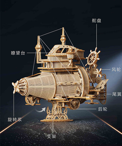 Juguete de bricolaje de madera, barco pirata, rompecabezas tridimensional, carrusel, rueda de la fortuna, coche de calabaza, modelo de vela marina