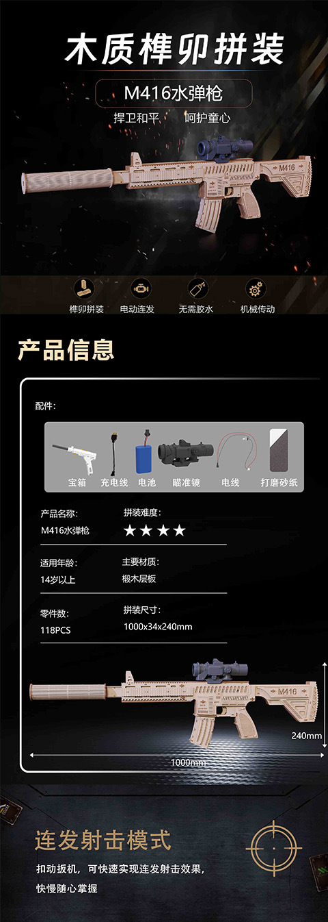 Venta caliente transfronteriza de Amazon pistola de juguete comer pollo accesorios de juego modelo para niños M416 rifle de madera de asalto