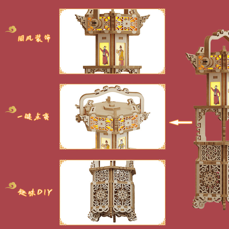 Lámpara retro de ensamblaje tridimensional de madera, rompecabezas de bricolaje hechos a mano, juguetes de ensamblaje creativo, iluminación, decoración de escritorio, estilo antiguo
