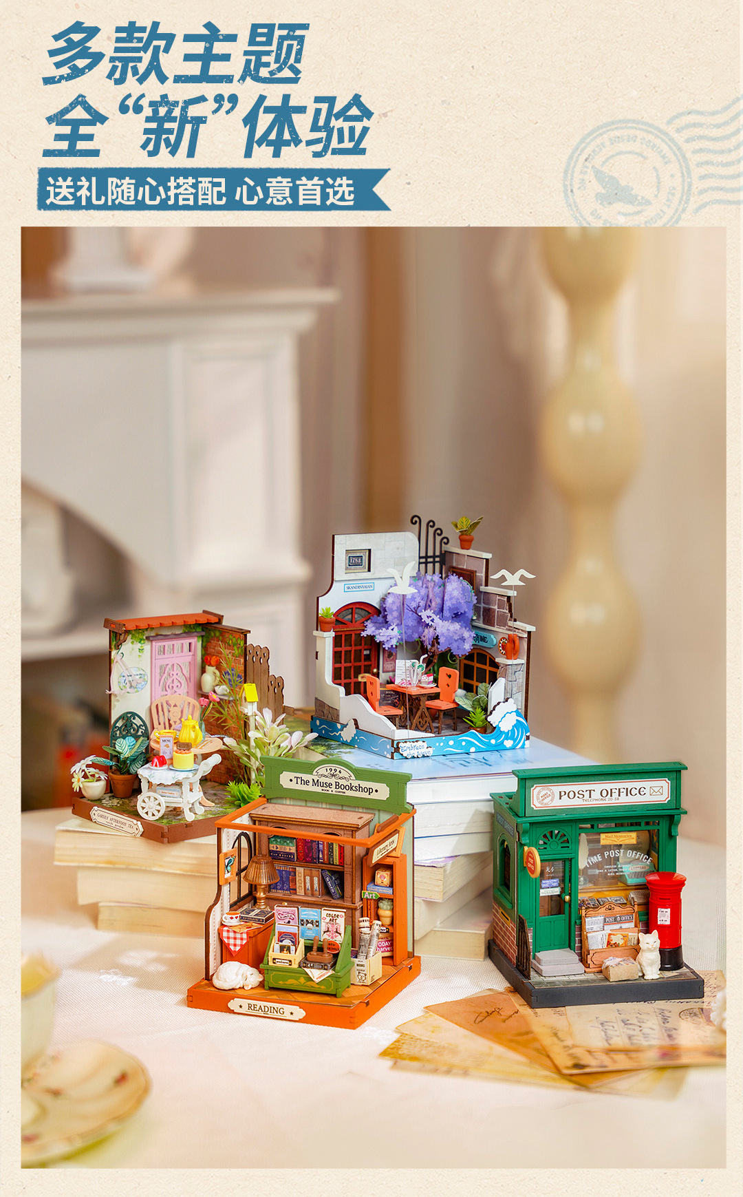 | Colores | Juego completo de 3 generaciones de pulgadas cuadradas,Oficina de correos de entrega lenta,Librería de inspiración,Té de la tarde en el jardín,Restaurante frente al mar |
