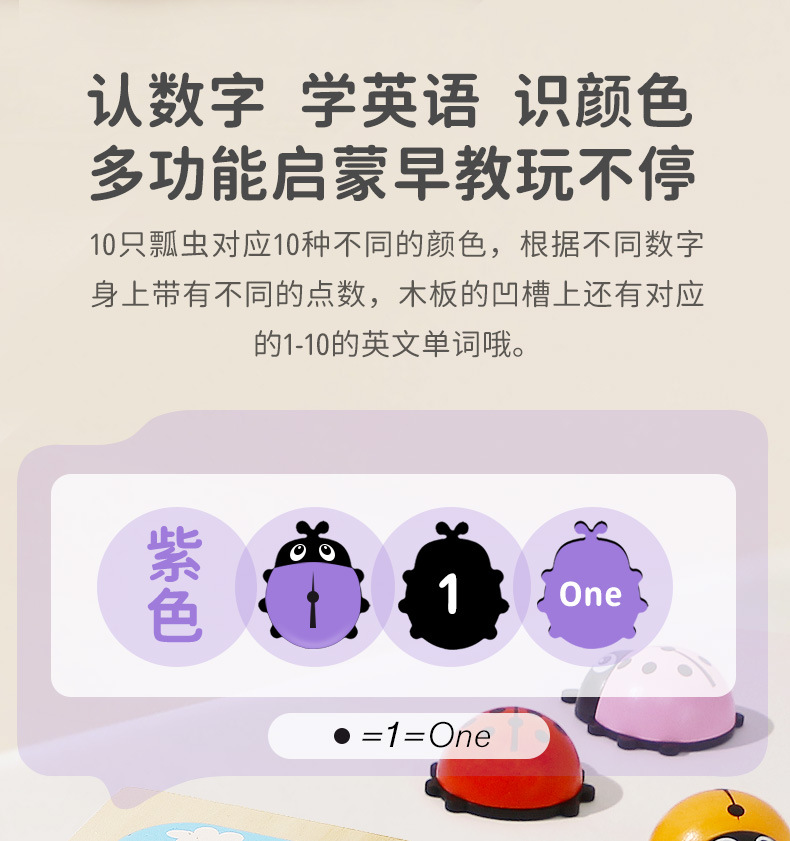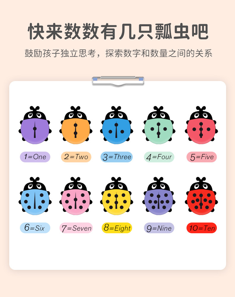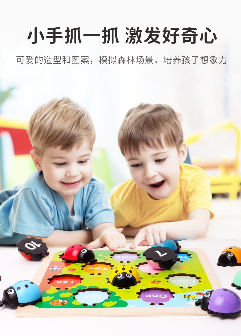 Rompecabezas de educación temprana para niños digital mariquita color cognitivo juego tablero 1-3 años de edad juguetes para bebés al por mayor