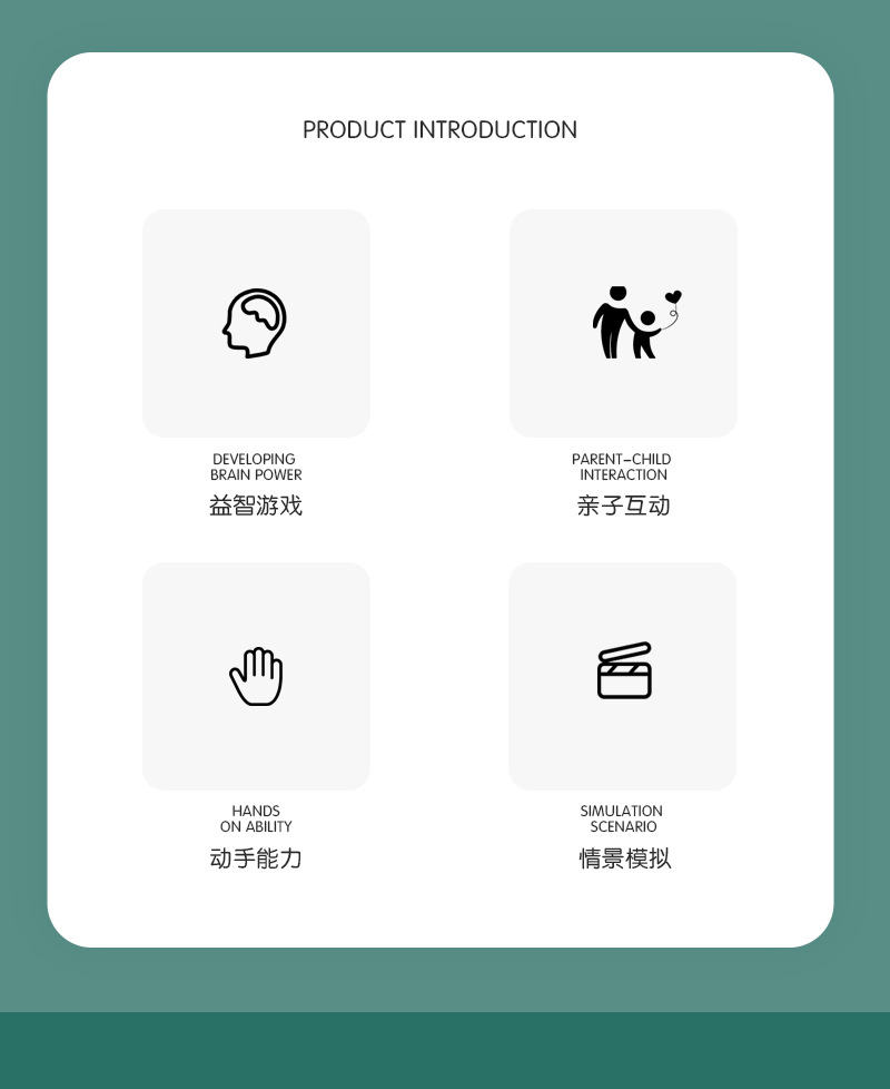 | Entrenamiento de habilidades | Desarrollo intelectual,Manos y cerebro,Agarre,Los sentidos,Juguetes interactivos,Comunicación entre padres e hijos,Cultivo de intereses |